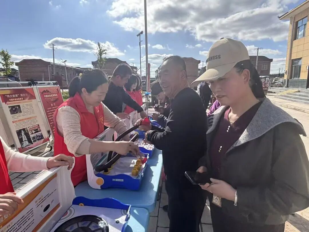 “文明驛站”環(huán)節(jié),醫(yī)護志愿者們設(shè)立服務(wù)臺、開展義診,為現(xiàn)場群眾提供健康檢查、疾病咨詢等服務(wù),將醫(yī)療關(guān)懷送到群眾家門口??破罩驹刚邔⒖破沾笈褴囬_到群眾身邊,通過宣傳展板、科普儀器和現(xiàn)場發(fā)放資料,向群眾普及科學(xué)知識,機械狗更是引來廣大群眾和青少年的圍觀。團縣委組織青年志愿者通過“雷鋒集市”免費向群眾發(fā)放回收的生活用品和衣物,幫助廣大群眾樹立環(huán)保意識,讓愛循環(huán)不息。新時代文明實踐志愿者穿梭在人群中,向廣大群眾發(fā)放移風(fēng)易俗倡議書和印有移風(fēng)易俗標語的圍裙、紙巾、雨傘等宣傳物品,讓“婚事新辦、喪事簡辦”的理念通過日常用品融入生活,提高群眾對移風(fēng)易俗的知曉率和支持率。