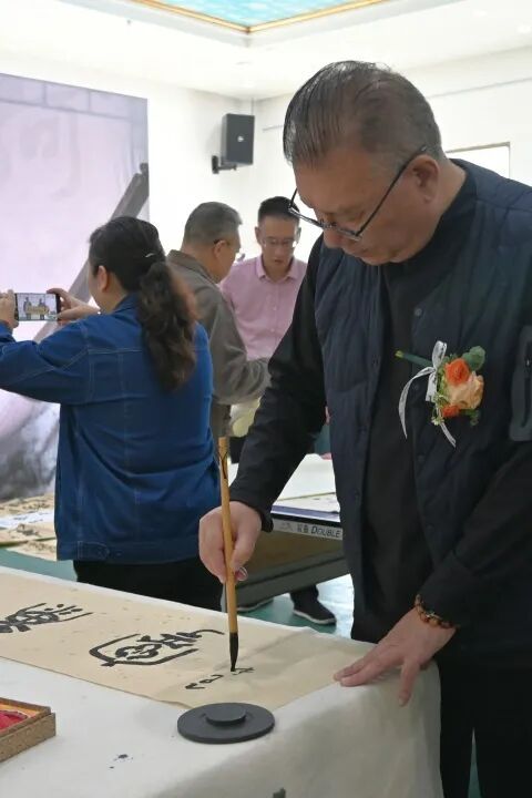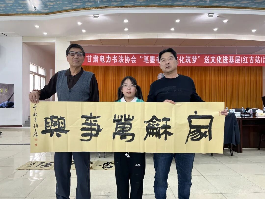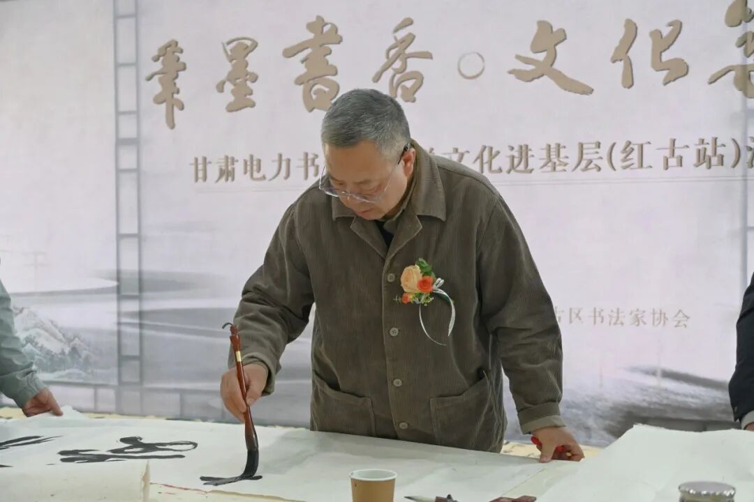 送文化環(huán)節(jié),書法家們根據(jù)一線職工的需求,現(xiàn)場揮毫潑墨、為大家贈送書法作品,現(xiàn)場氣氛熱烈、歡聲笑語不斷,對聯(lián)、古詩詞、祝福語在宣紙上熠熠生輝,楷書、隸書、草書等多種字體交相輝映。此外,書法家們還圍繞電網(wǎng)建設(shè)、安全生產(chǎn)、電力保供、優(yōu)質(zhì)服務(wù)等主題為蘭州公司送上了文化的祝福,彰顯了筆墨書香與企業(yè)文化建設(shè)的深層交融。