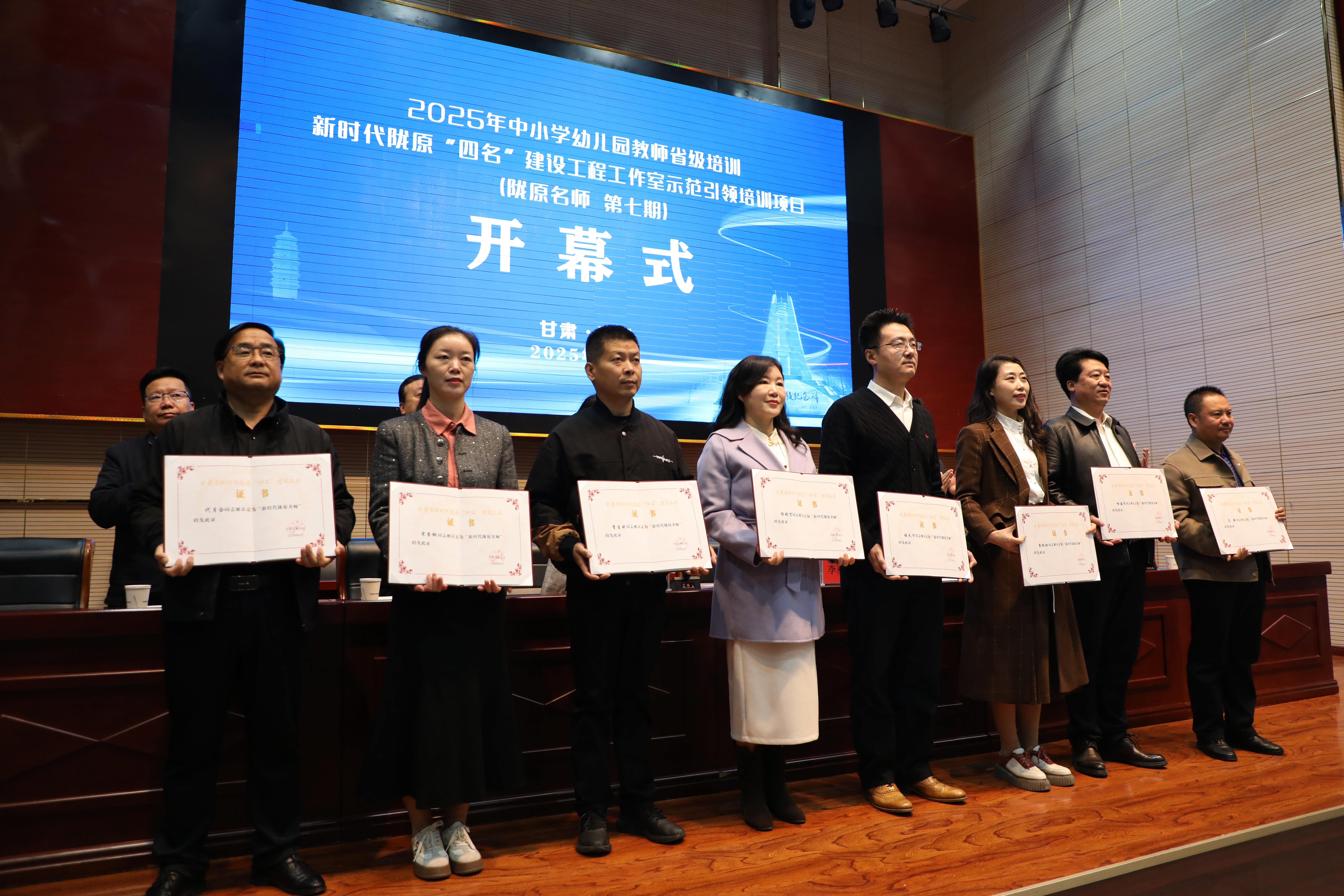 培訓開幕式現(xiàn)場,為8個新時代隴原名師工作室頒發(fā)了隴原名師證書。
