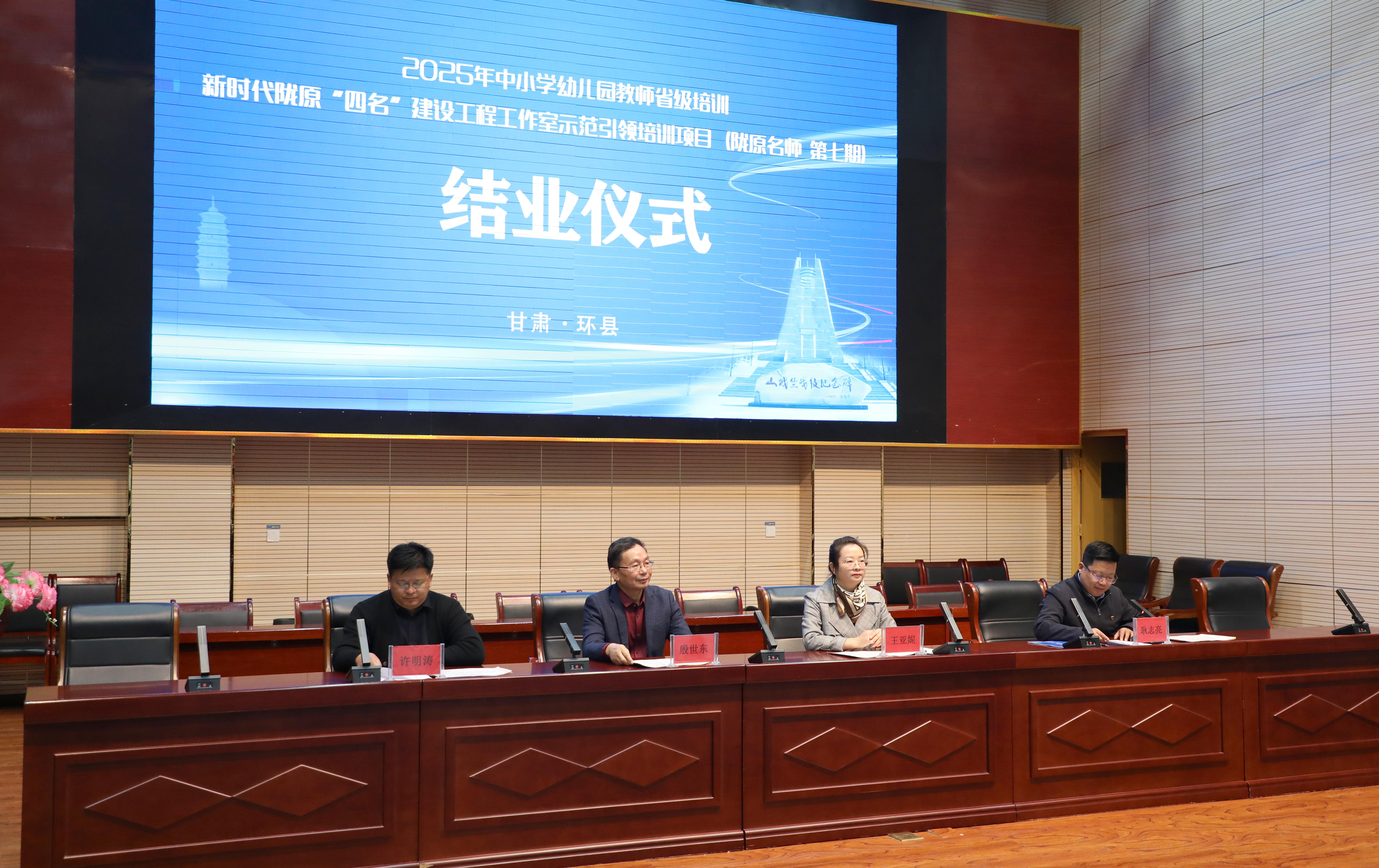 培訓閉幕式上,環(huán)縣教育教學研究室主任許明濤對此次培訓進行總結(jié)。他表示,三天的培訓通過專家講座、課堂觀摩、分組研討、反思交流等多元形式,讓全體參訓人員在工作室活動設(shè)計力、研修成果凝練力、課程領(lǐng)導(dǎo)力上實現(xiàn)了實實在在的提升。希望大家把新理念、新方法內(nèi)化為專業(yè)素養(yǎng),轉(zhuǎn)化為教育改革動能,環(huán)縣將珍惜此次省級培訓機遇,梳理吸收培訓成果,優(yōu)化名師培養(yǎng)體系,為教師搭建成長平臺,為全縣教育高質(zhì)量發(fā)展、全省基礎(chǔ)教育事業(yè)貢獻“環(huán)縣力量”。