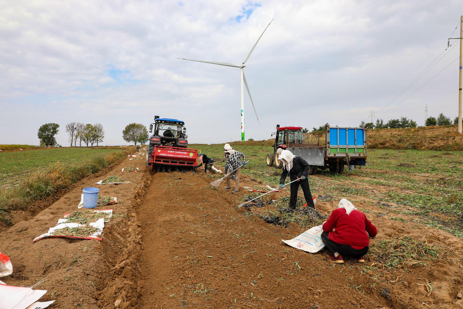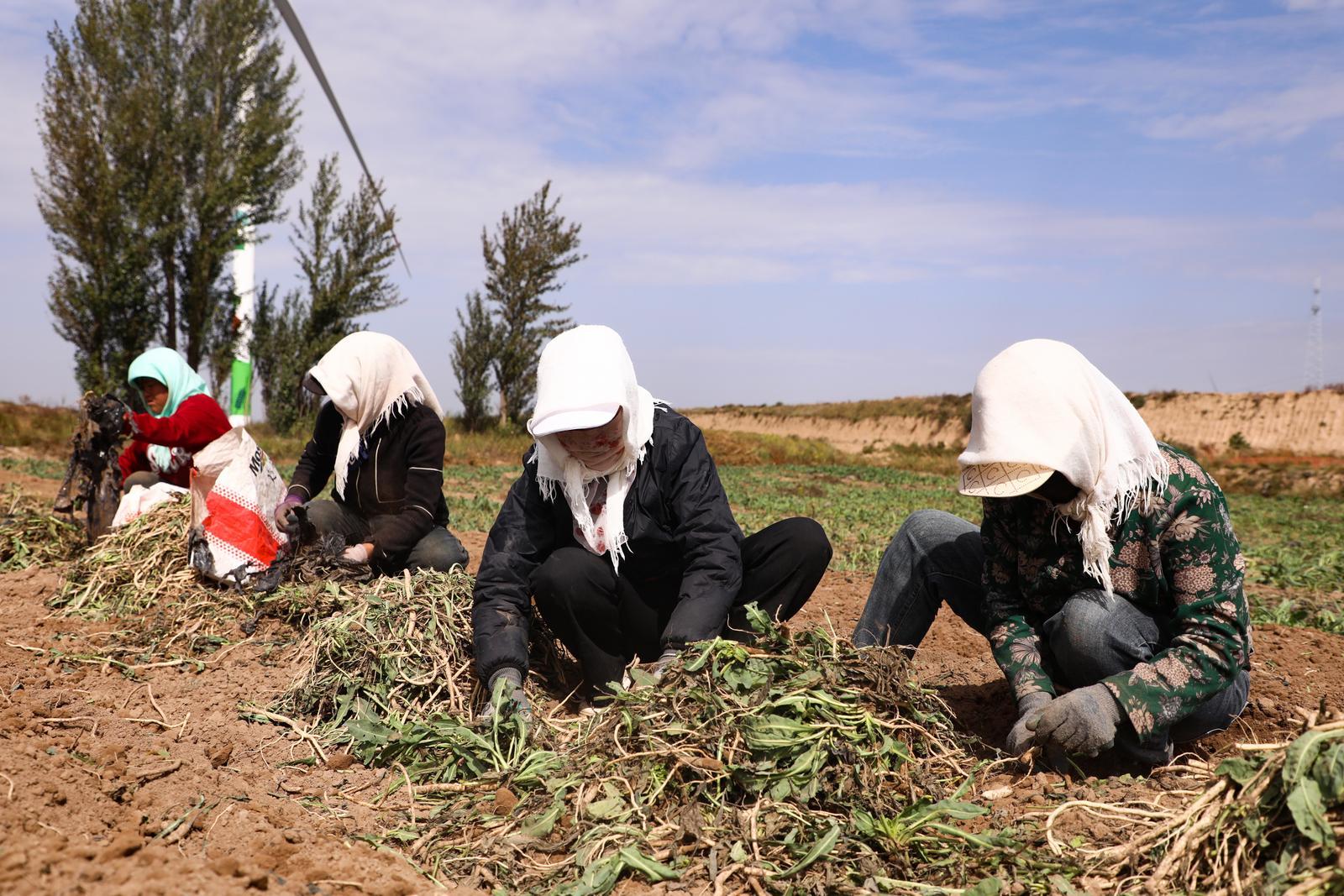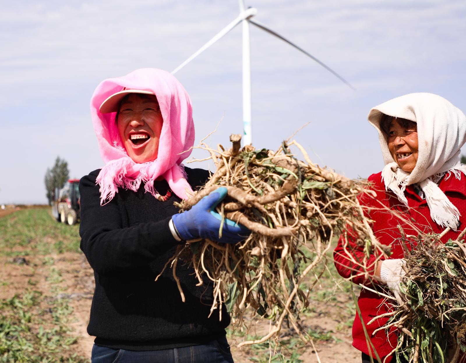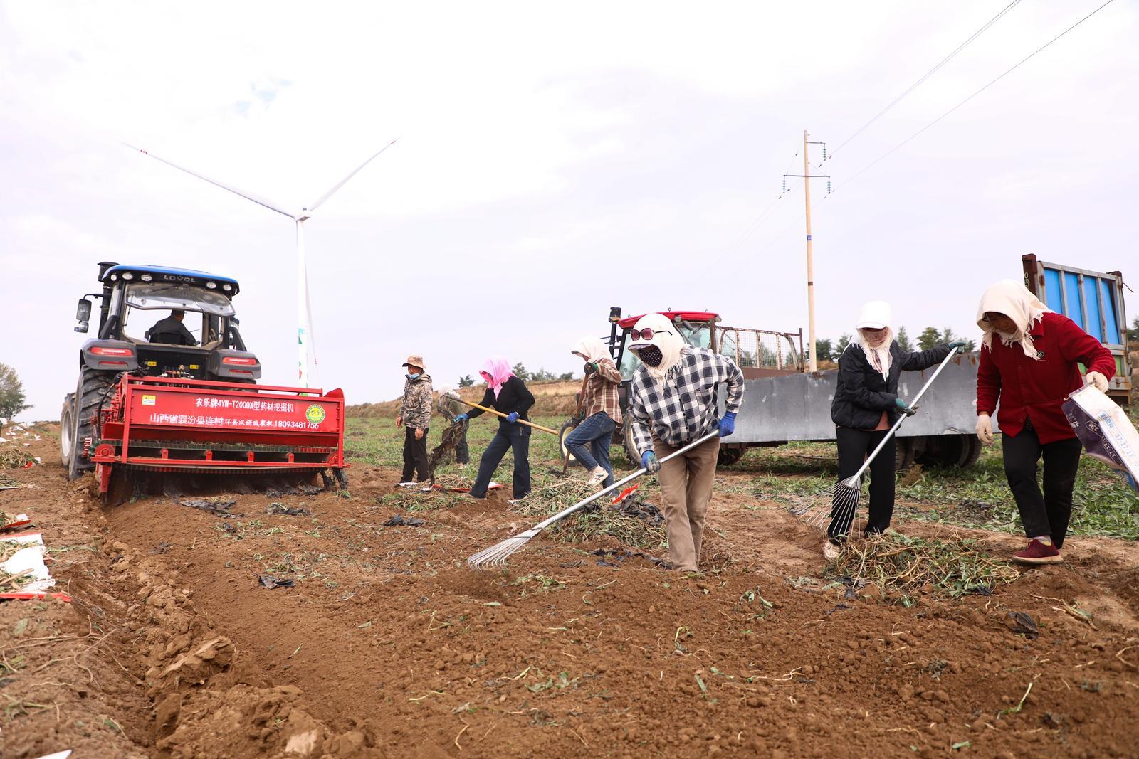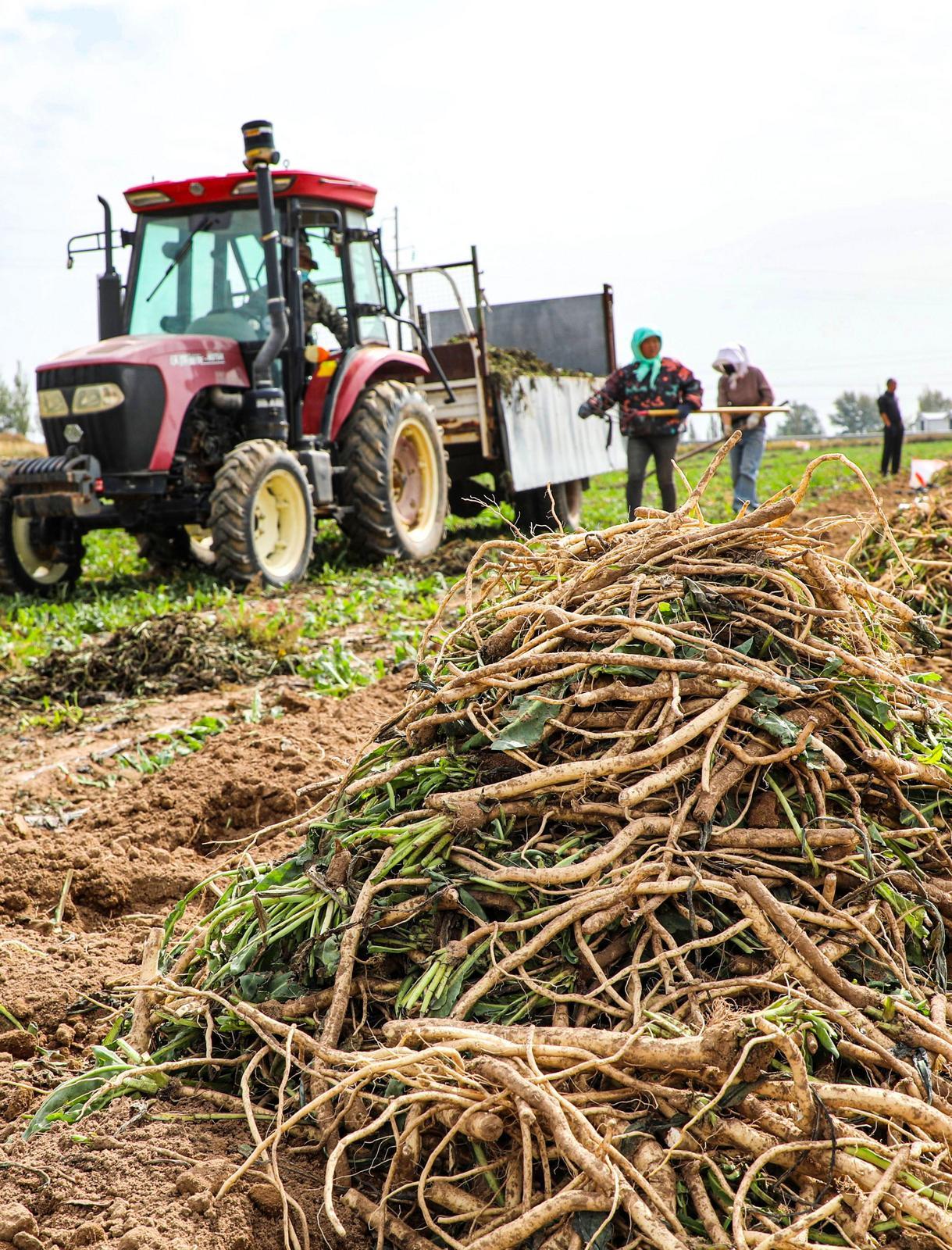 金秋時(shí)節(jié),在環(huán)縣秦團(tuán)莊鄉(xiāng)的千畝藥田,板藍(lán)根迎來集中采挖期。田壟間,采挖機(jī)轟鳴開過,翻起帶著濕氣的沙土。農(nóng)戶們手持工具緊隨其后,彎腰、提苗、抖土,新挖的藥材在田埂上堆疊出豐收輪廓。
