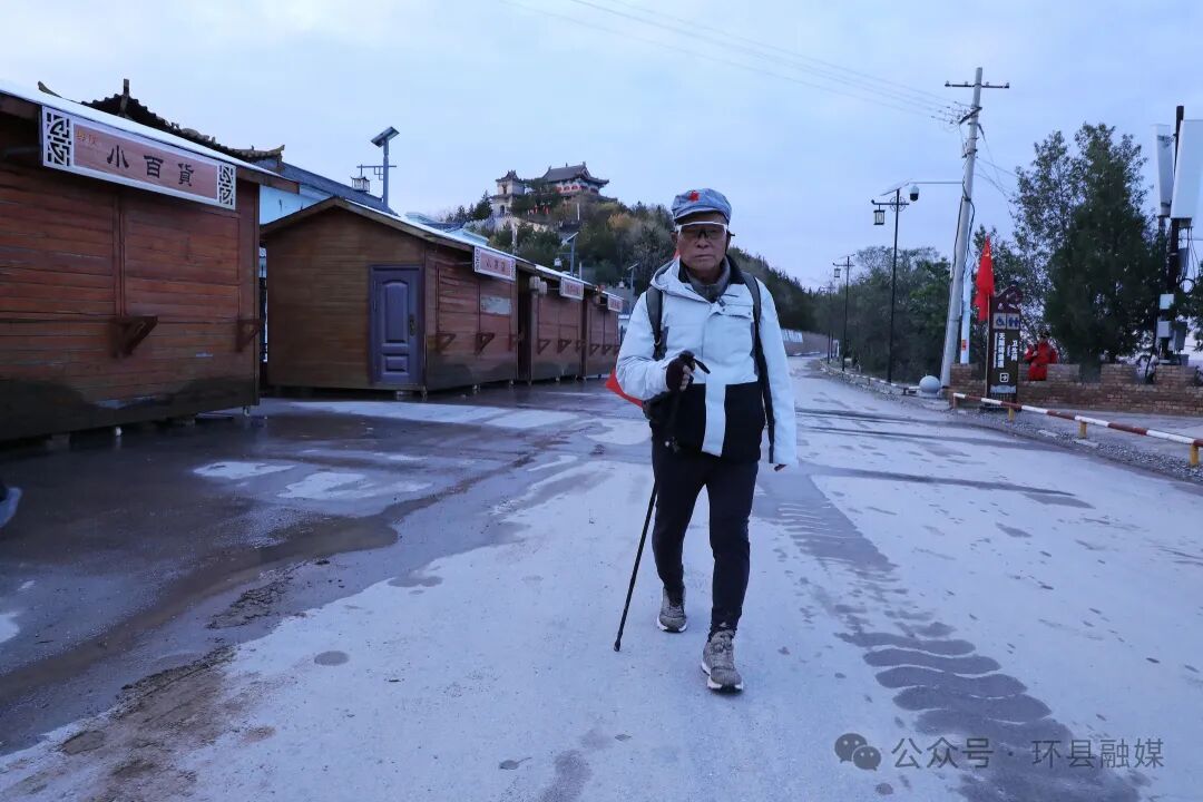 深秋的黃土高原,細(xì)雨初歇,又遇一場(chǎng)早雪。環(huán)縣耿灣鄉(xiāng)東老爺山的山道上,一位背著行包、身形微駝的老人正踏著小路堅(jiān)定前行。