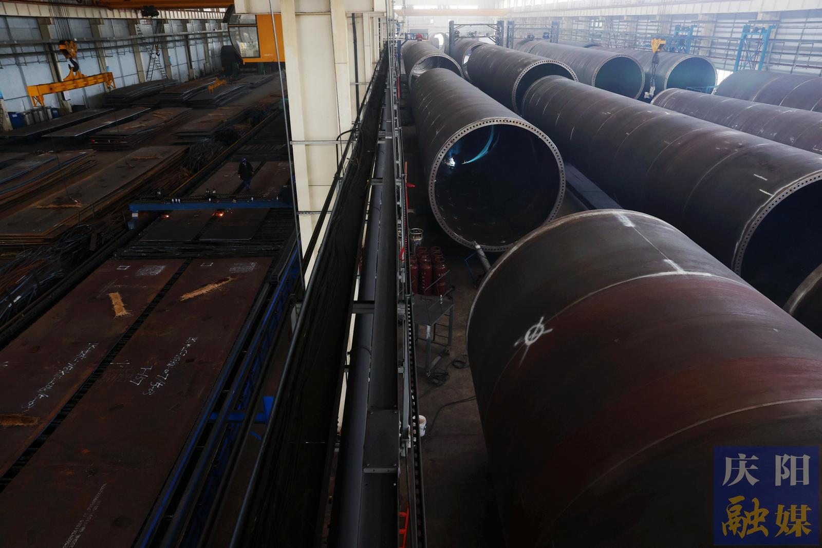 風電塔筒生產(chǎn)車間。