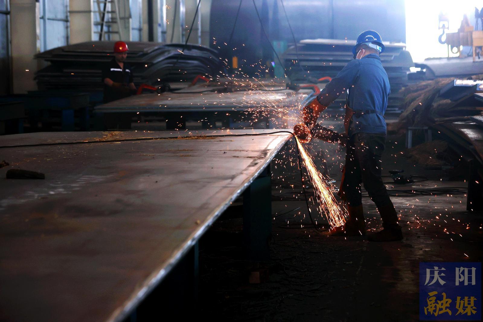 甘肅馳風重工有限公司于2022年8月完成注冊,2023年推進項目建設,2025年3月正式投產(chǎn),公司位于慶陽市寧縣和盛鎮(zhèn)瑞慶新能源集團裝備制造基地,總投資2.8億元。項目占地規(guī)模可觀,涵蓋1.4萬平方米標準化生產(chǎn)廠房、3萬平方米原料及成品堆場,還新建1500平方米噴砂涂裝車間與600平方米辦公場所,構(gòu)建起“生產(chǎn)-加工-涂裝-倉儲-辦公”一體化運營體系。走進廠區(qū),巨大的圓形塔筒整齊排列,等待發(fā)往訂購企業(yè);車間內(nèi) 4 條生產(chǎn)線有序運轉(zhuǎn),工人們身著防護服在崗位上忙碌,厚重鋼板經(jīng)多道工序最終鍛造成型。