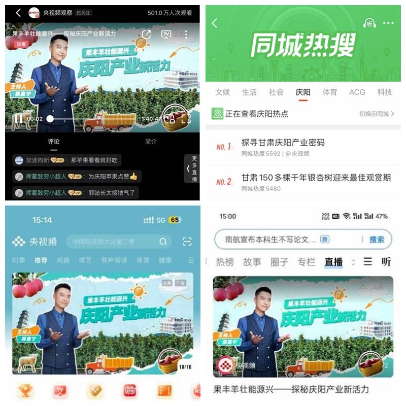 截止10月20日下午19點,《果豐羊壯能源興——探秘慶陽產(chǎn)新活力》2025慶陽特色產(chǎn)業(yè)全景探訪專場節(jié)目直播,總直播觀看量近848.5萬次+。微博話題#探尋甘肅慶陽產(chǎn)業(yè)密碼#登上慶陽同城榜熱搜第一。其中,央視頻端內(nèi)觀看量近500萬次+;在央視頻端外微博、微信視頻號、抖音、快手、B站、頭條、百度、企鵝、優(yōu)酷等10個平臺央視頻第三方平臺賬號同步分發(fā),總觀看量348.5萬。