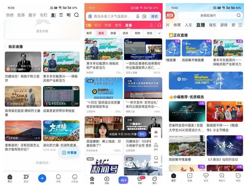 直播獲得百度直播新聞雙列流、知乎直播焦點、知乎精彩直播、優(yōu)酷資訊焦點大圖、優(yōu)酷正在直播等多平臺重點資源位推薦。