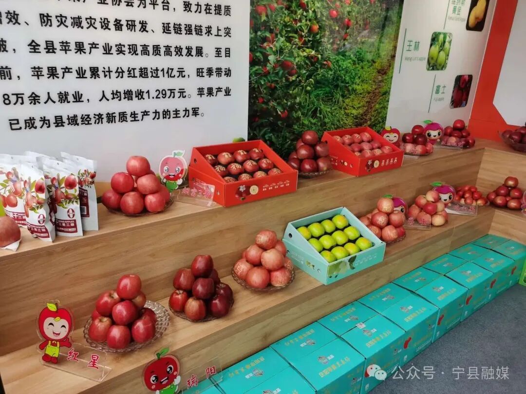 在展陳方面,寧縣展館精心布置,集中展出了瑞雪、爵士、紅星、皇后、秦脆、米奇拉、紅思尼克、宮崎富士、煙富3號等十余種本地優(yōu)質(zhì)蘋果,吸引了眾多參會者駐足品鑒。同時,展館內(nèi)通過視頻展示、現(xiàn)場講解以及背景資料介紹等多種形式,全面呈現(xiàn)了寧縣蘋果從種植到銷售“科技賦能”“產(chǎn)業(yè)富民”的全產(chǎn)業(yè)鏈發(fā)展成果。
