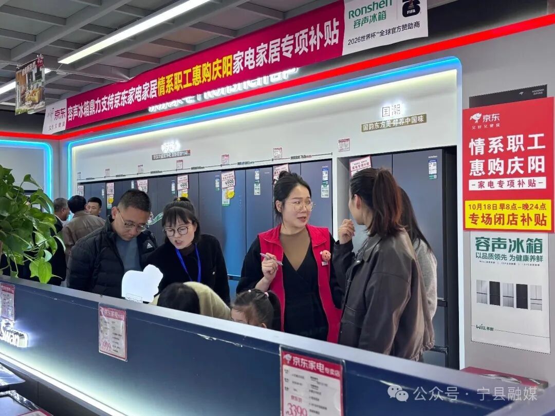10月18日,由寧縣總工會、縣商務局聯(lián)合京東家電寧縣億聯(lián)商貿城店共同開展的“情系職工·惠購慶陽”家電家居專項補貼活動在京東家電寧縣億聯(lián)商貿城店舉行。