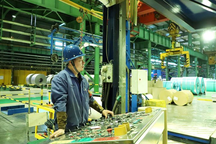 生產(chǎn)車間內(nèi),軋機(jī)轟鳴,赤紅鋼水化作精密鋼板,銀白色鋁卷在軋輥間穿梭翻飛;戈壁荒灘上,光伏板熠熠生輝,清潔能源輸送全國……