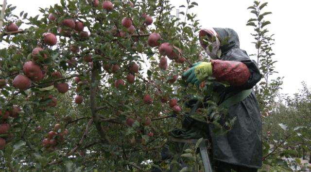 “我們在肖咀有330畝果園,前段時間早蘋果收成有2萬多斤,現(xiàn)在剩下晚富士品種,找了六七十名工人在全力采收,目測能產(chǎn)100多萬斤蘋果,按照一斤2.8元的價格,預計能賣200多萬元?!焙纤疂櫾从袡C林果農(nóng)民專業(yè)合作社負責人許志堅說。