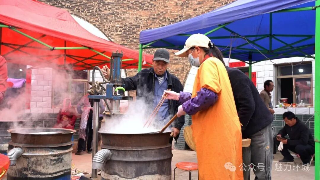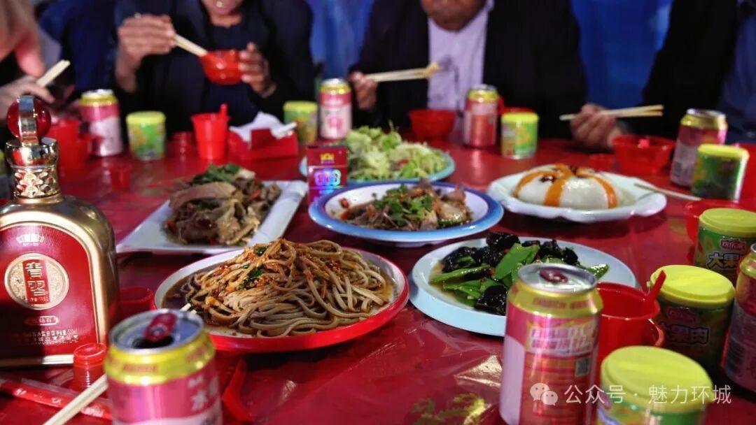 婚禮現(xiàn)場,處處彰顯著文明節(jié)儉的新風(fēng)。紅雙喜字貼在白墻上格外醒目,餐桌上,香煙、酒水嚴(yán)格遵循每包不超15 元、每瓶80元以下的標(biāo)準(zhǔn),一道道環(huán)縣特色美食擺得滿滿當(dāng)當(dāng) —— 筋道的饸饹面澆上濃郁的臊子湯,鮮嫩的豬血燴豆腐飄著蔥花,金黃酥脆的油餅、軟糯香甜的雜糧饃饃,這些充滿鄉(xiāng)土氣息的美食,不僅讓賓客們品嘗到了地道的家鄉(xiāng)味道,更傳遞出節(jié)儉質(zhì)樸的新風(fēng)尚。