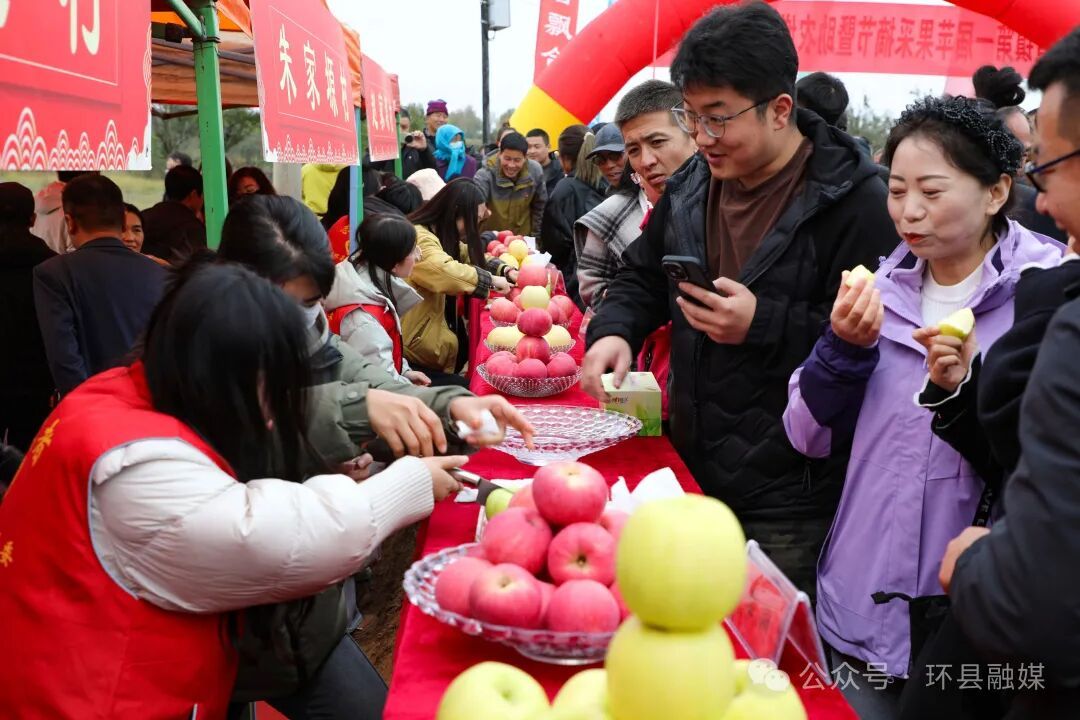 果香引客來,助農(nóng)正當(dāng)時(shí)。10月22日下午2時(shí),環(huán)縣合道鎮(zhèn)朱家塬村的蘋果園內(nèi)熱鬧非凡,以“黨建引領(lǐng)抱團(tuán)發(fā)展 山地蘋果香飄合川”為主題的首屆蘋果采摘節(jié)暨助農(nóng)增收宣傳推介活動(dòng)正式拉開帷幕。