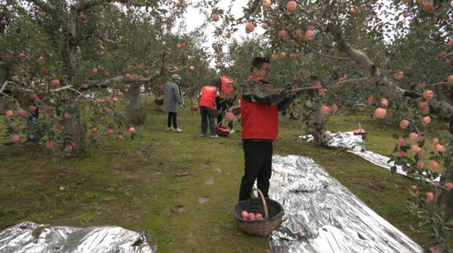 “我的果園今年套了15萬袋,最近下雨無法采摘,現(xiàn)在村上來志愿者給我?guī)兔φO果,能產(chǎn)4萬多斤蘋果,儲(chǔ)存在果庫等著銷售?!碧O果種植戶薛富祥說。