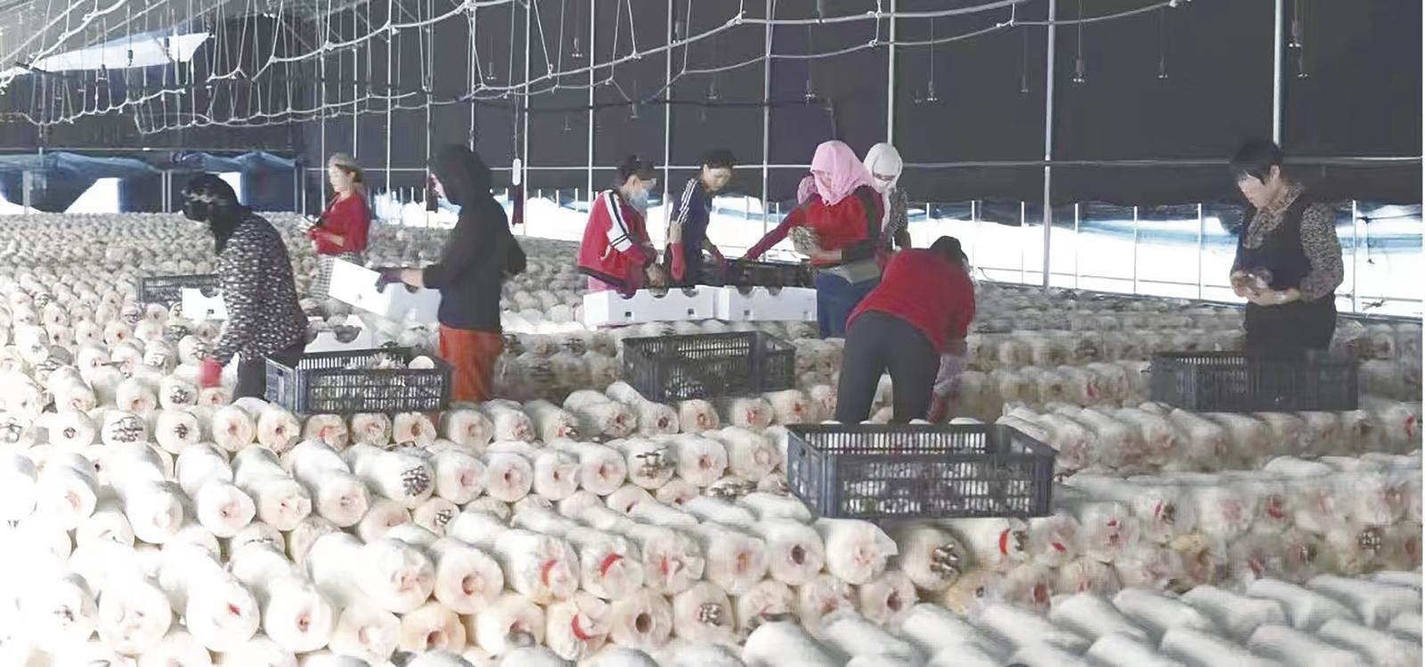 正寧縣山河鎮(zhèn)董莊村食用菌產(chǎn)業(yè)基地,工人在采摘蘑菇。 慶陽(yáng)融媒記者 劉效國(guó) 攝