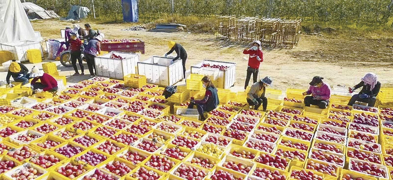 正寧縣永和鎮(zhèn)下南村互幫合作社蘋果示范園里,工人在分揀蘋果。 慶陽(yáng)融媒記者 劉效國(guó) 攝