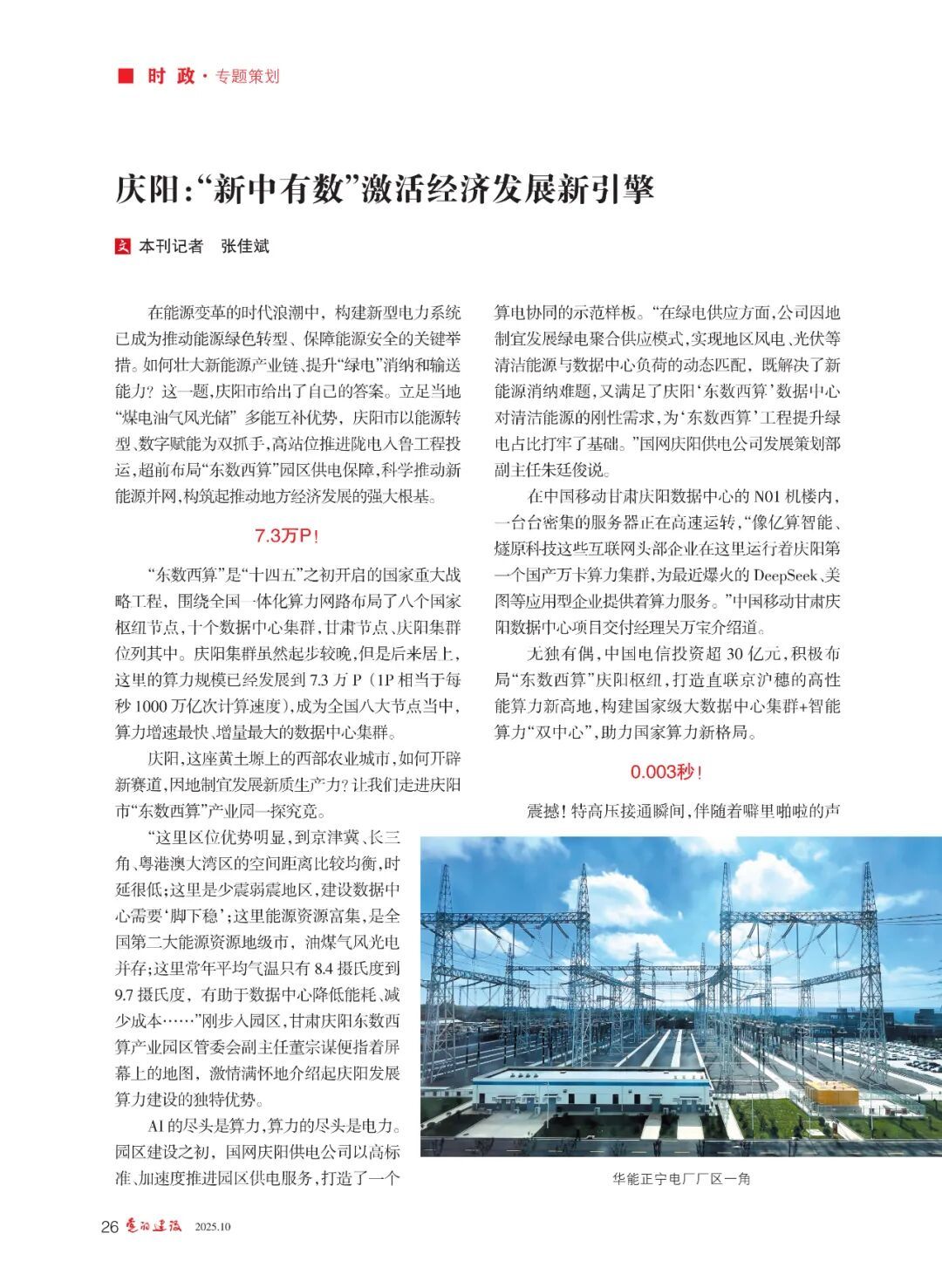 在能源變革的時代浪潮中,構(gòu)建新型電力系統(tǒng)已成為推動能源綠色轉(zhuǎn)型、保障能源安全的關(guān)鍵舉措。如何壯大新能源產(chǎn)業(yè)鏈、提升“綠電”消納和輸送能力?這一題,慶陽市給出了自己的答案。立足當?shù)亍懊弘娪蜌怙L光儲”多能互補優(yōu)勢,慶陽市以能源轉(zhuǎn)型、數(shù)字賦能為雙抓手,高站位推進隴電入魯工程投運,超前布局“東數(shù)西算”園區(qū)供電保障,科學推動新能源并網(wǎng),構(gòu)筑起推動地方經(jīng)濟發(fā)展的強大根基。
