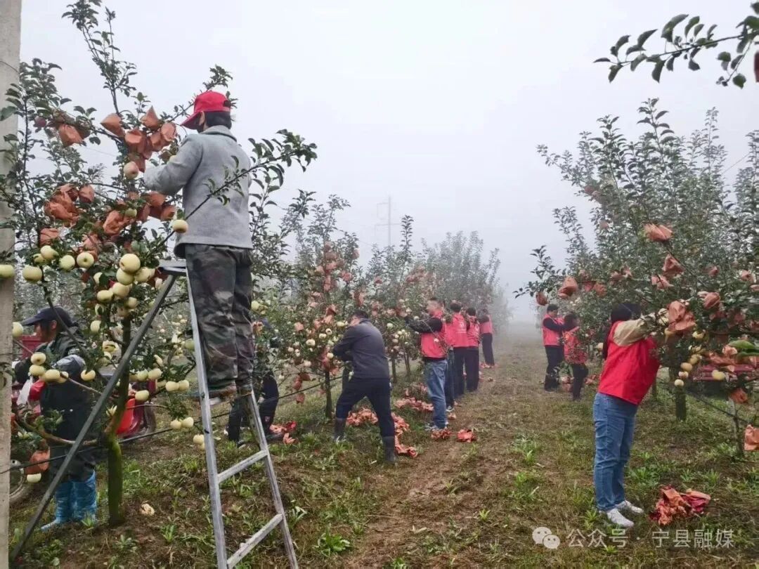 太昌鎮(zhèn)干部群眾幫果農(nóng)摘果袋