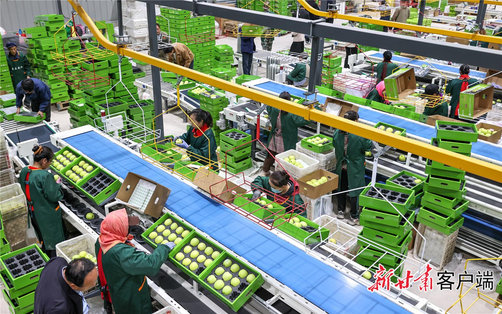 慶陽(yáng)居立現(xiàn)代農(nóng)業(yè)發(fā)展有限責(zé)任公司蘋果自動(dòng)化分揀車間。