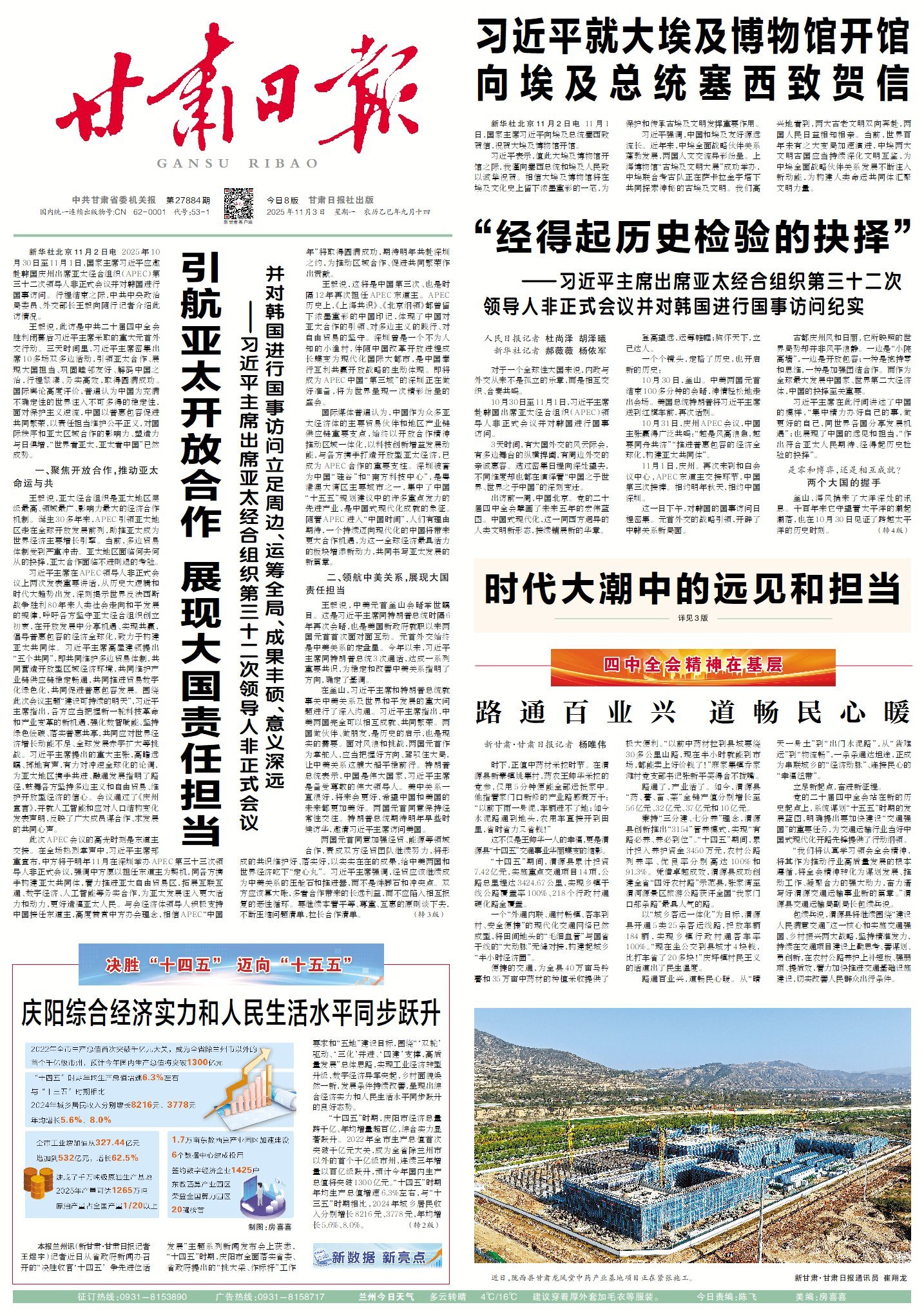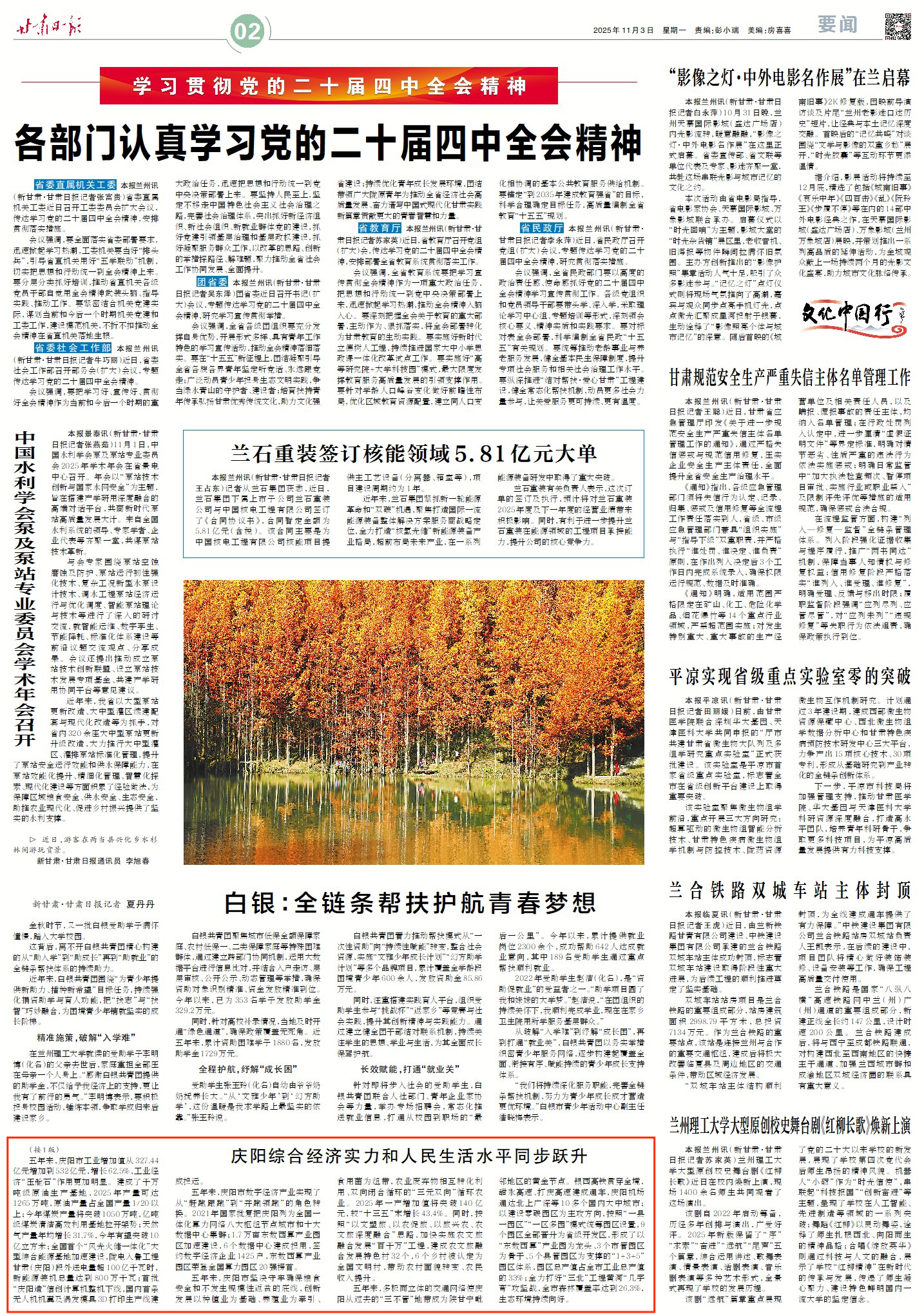 新甘肅客戶端蘭州10月31日訊(新甘肅·甘肅日?qǐng)?bào)記者 王煜宇)記者從今天下午省政府新聞辦召開(kāi)的“決勝收官‘十四五’ 爭(zhēng)先進(jìn)位話發(fā)展”主題系列新聞發(fā)布會(huì)上獲悉,“十四五”時(shí)期,慶陽(yáng)市全面落實(shí)省委、省政府提出的“挑大梁、作標(biāo)桿”工作要求和“五地”建設(shè)目標(biāo),圍繞“‘雙輪’驅(qū)動(dòng)、‘三化’并進(jìn)、‘四建’支撐,高質(zhì)量發(fā)展”總體思路,實(shí)現(xiàn)工業(yè)經(jīng)濟(jì)轉(zhuǎn)型升級(jí),數(shù)字經(jīng)濟(jì)異軍突起,鄉(xiāng)村面貌煥然一新,發(fā)展條件持續(xù)改善,呈現(xiàn)出綜合經(jīng)濟(jì)實(shí)力和人民生活水平同步躍升的良好態(tài)勢(shì)。