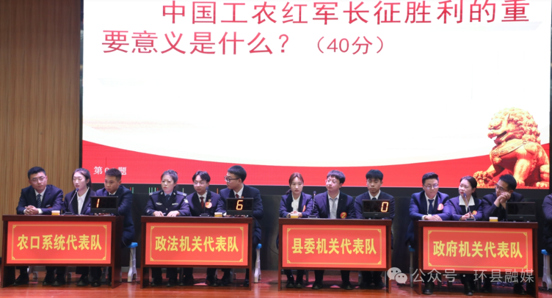 參賽選手們精神飽滿、思路清晰,圍繞紅軍長征途經(jīng)環(huán)縣的歷史細(xì)節(jié)、重要戰(zhàn)役、紅色故事等核心內(nèi)容對(duì)答如流,充分展現(xiàn)了我縣干部職工扎實(shí)的黨史知識(shí)儲(chǔ)備和昂揚(yáng)向上的精神風(fēng)貌。精彩的作答不時(shí)贏得現(xiàn)場(chǎng)觀眾陣陣掌聲,整場(chǎng)競(jìng)賽不僅是一場(chǎng)知識(shí)的較量,更是一堂沉浸式、互動(dòng)式的黨史學(xué)習(xí)教育課。