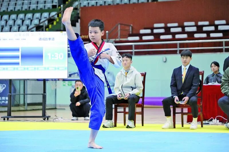 同樣備受關(guān)注的,還有跆拳道賽場(chǎng)。近日,2025-2026年跆拳道大滿貫世青俱樂(lè)部聯(lián)賽·慶陽(yáng)站比賽在市體育館舉行,吸引慶陽(yáng)及周邊地市的17支代表隊(duì)280名選手參與獎(jiǎng)牌爭(zhēng)奪。此次比賽項(xiàng)目豐富,涵蓋個(gè)人與團(tuán)體競(jìng)技、品勢(shì)、快腿王、擊破及VR虛擬競(jìng)技等,按年齡細(xì)分為14個(gè)級(jí)別。賽場(chǎng)上,選手們身著潔白道服,精神抖擻,伴隨著清脆響亮的吶喊聲,一次次精準(zhǔn)完成橫踢、下劈、后旋踢等技術(shù)動(dòng)作。