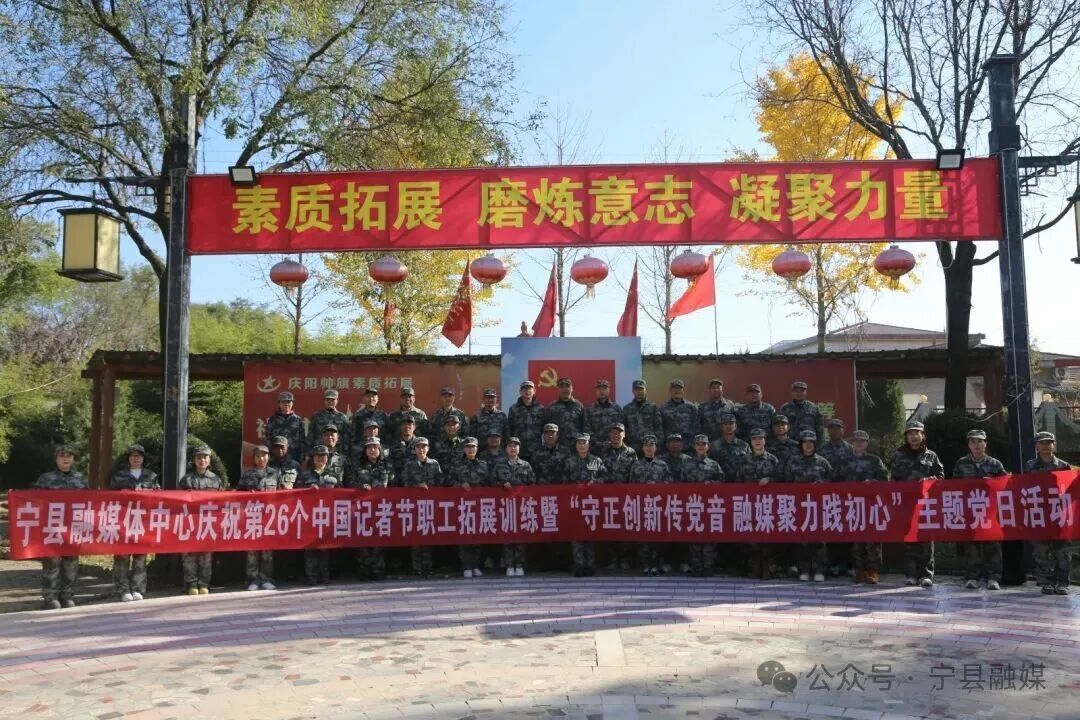 在第26個(gè)中國(guó)記者節(jié)來(lái)臨之際,11月1日,寧縣融媒體中心在西峰區(qū)后官寨王嶺村帥旗拓展公司訓(xùn)練基地開(kāi)展記者節(jié)戶(hù)外拓展訓(xùn)練暨“守正創(chuàng)新傳黨音﹒融媒聚力踐初心”主題黨日活動(dòng),以“拓展+黨建”的形式,為新聞工作者注入新活力。