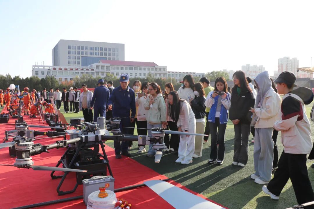 在高精尖消防裝備器材展區(qū),平日里難得一見(jiàn)的液壓破拆工具組、雷達(dá)生命探測(cè)儀、大載重?zé)o人機(jī)、滅火機(jī)器人等“秘密武器”齊齊亮相,引得學(xué)生們紛紛駐足圍觀,驚嘆于現(xiàn)代消防科技力量的強(qiáng)大。消防員耐心講解著各種器材的用途和原理,滿足了大家對(duì)消防工作的好奇。