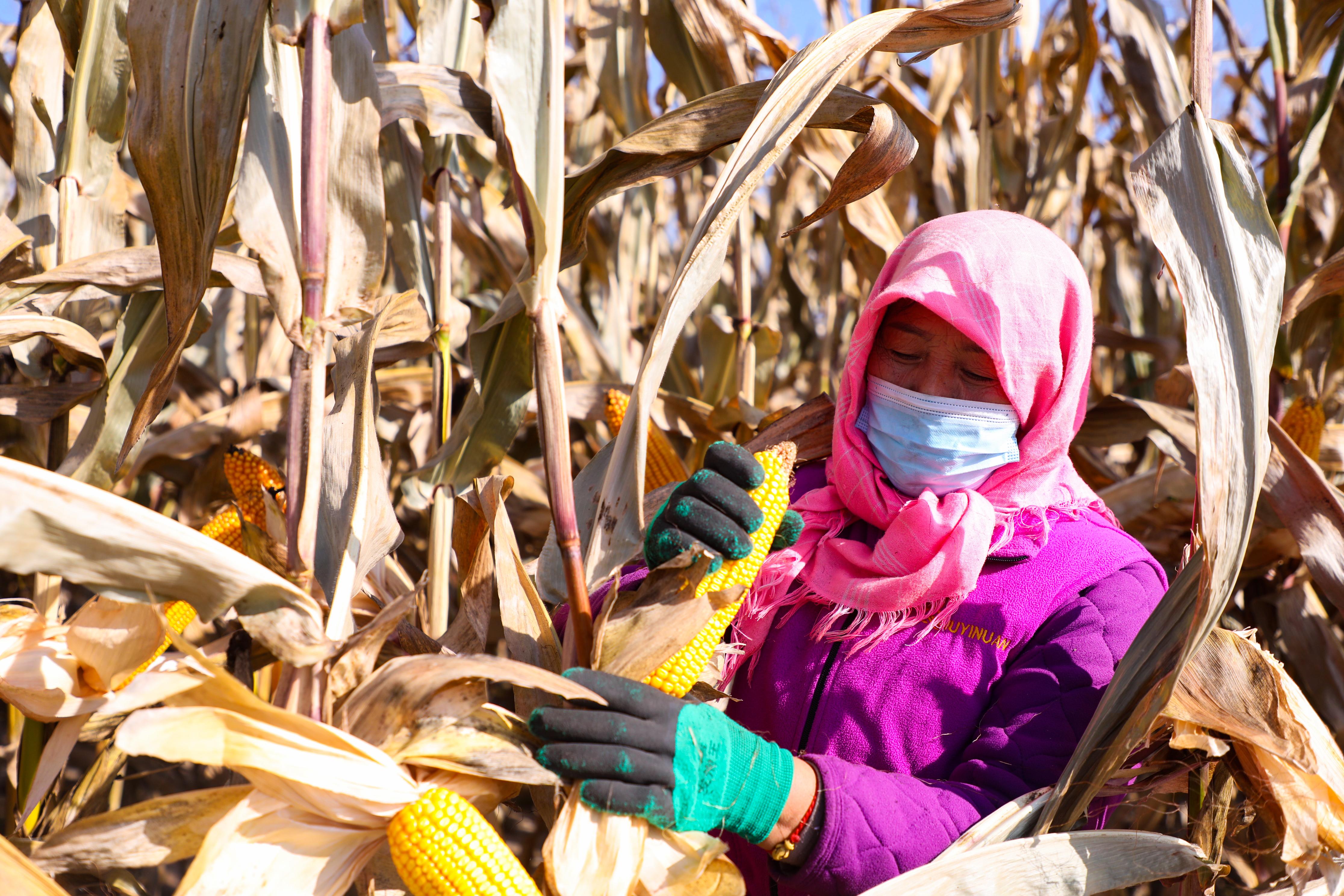既有秋收玉米的金黃喜悅,