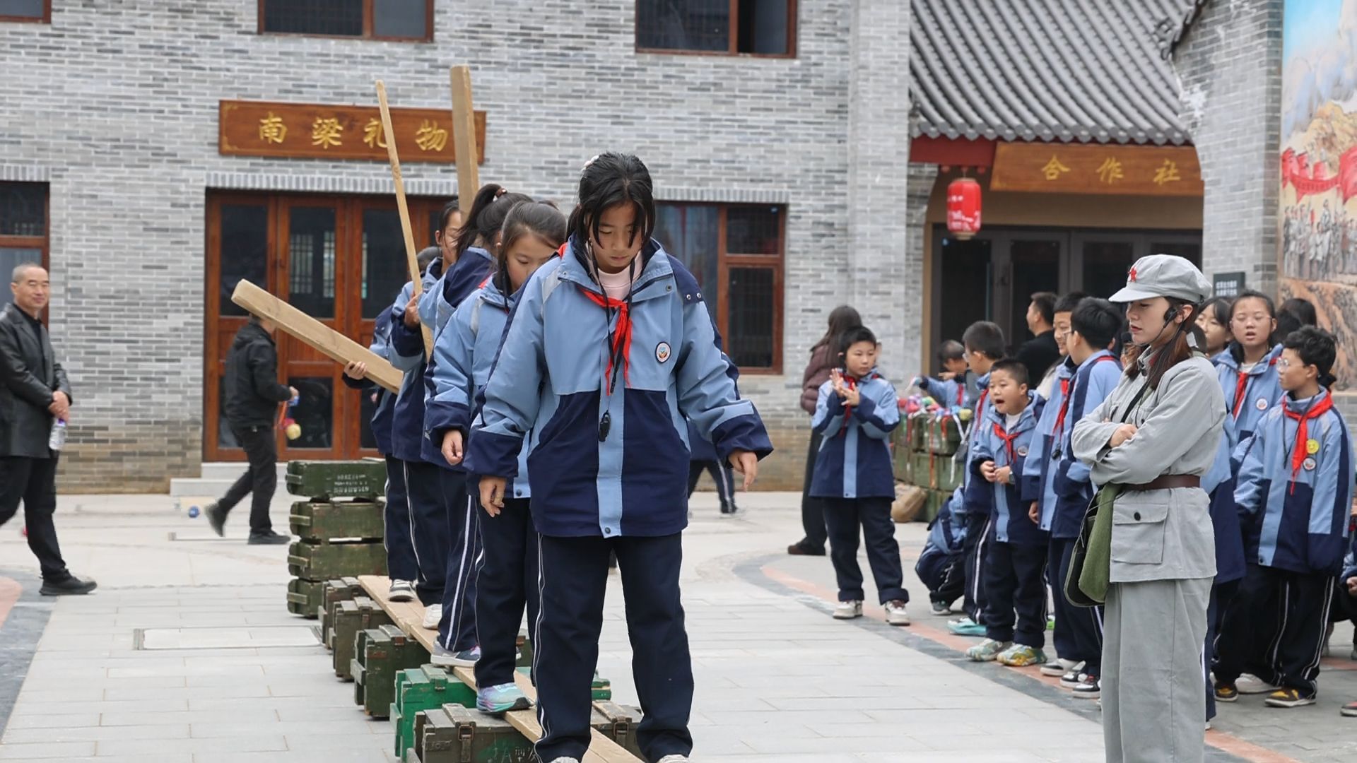 11月5日,慶陽(yáng)市西峰區(qū)向陽(yáng)小學(xué)700名五年級(jí)師生踏上南梁紅色圣地的研學(xué)之路。這場(chǎng)以“行浸式研學(xué)+實(shí)地感悟”為核心的旅程,打破了課堂與革命遺址的時(shí)空界限,讓南梁的紅色歷史從課本走向現(xiàn)實(shí)。在長(zhǎng)征國(guó)家文化公園南梁革命根據(jù)地核心展示園,一系列精心設(shè)計(jì)的特色活動(dòng),讓革命精神可感可觸。“烽火南梁城”的行浸式體驗(yàn)環(huán)節(jié)中,在專業(yè)講解員的引導(dǎo)下,師生們循著模擬的革命路線緩步前行。講解員生動(dòng)講述的南梁革命時(shí)期軍民同心、浴血奮戰(zhàn)的歷史故事,與沿途復(fù)原的舊戰(zhàn)場(chǎng)場(chǎng)景相互呼應(yīng)。當(dāng)模擬戰(zhàn)斗的號(hào)角吹響,孩子們迅速分工協(xié)作、并肩前行,在緊張激烈的氛圍中,真切體會(huì)到革命先輩面對(duì)槍林彈雨時(shí)的無畏勇氣,深刻感悟到不怕犧牲、奮勇拼搏的革命內(nèi)核。