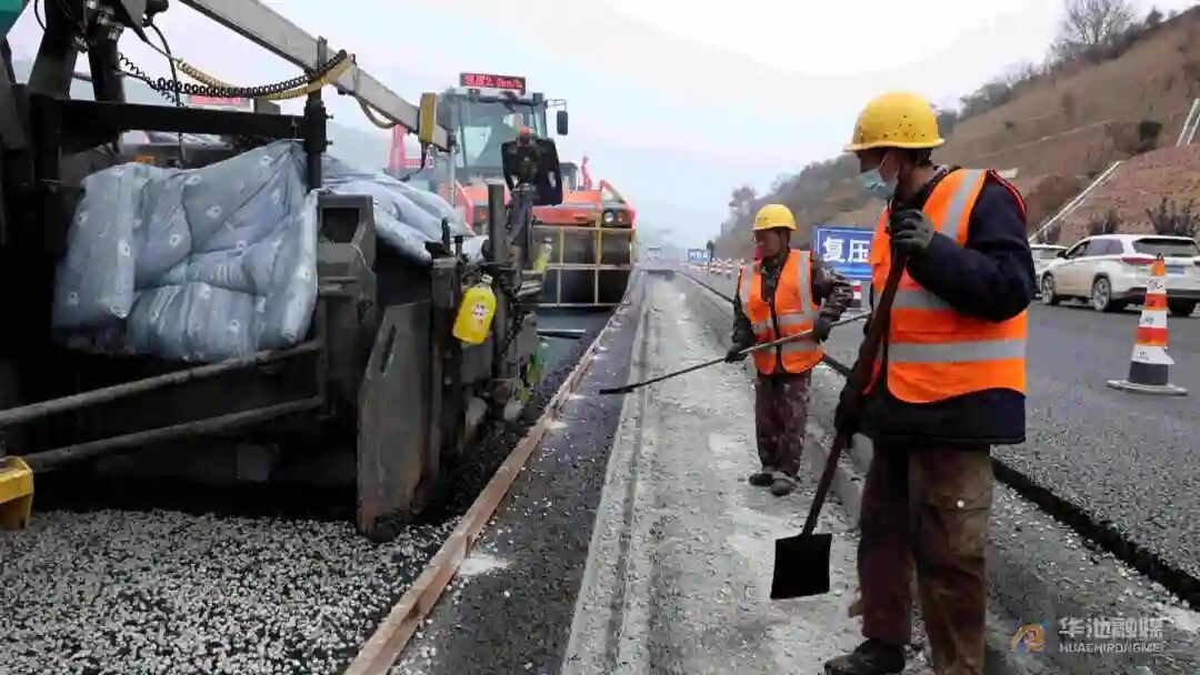 太華項目路面二標現場負責人林雪生說:“現在進行的是太華路面項目瀝青路面下面層施工工作,然后溫度控制方面,我們采用雙層棉被對運輸車輛進行保溫,膠輪壓路機采用防風布進行圍擋,確保施工過程中溫度不受損失,然后壓實度和平整度的控制,采用兩臺雙鋼輪壓路機進行前靜后振的靜壓,四臺膠輪壓路機進行復壓確保施工過程中壓實度和平整度符合要求,在全過程中咱們的工地實驗室、監(jiān)理單位還有中心試驗室對施工整體質量進行全過程檢測,保證太華路面項目下面層施工質量。”