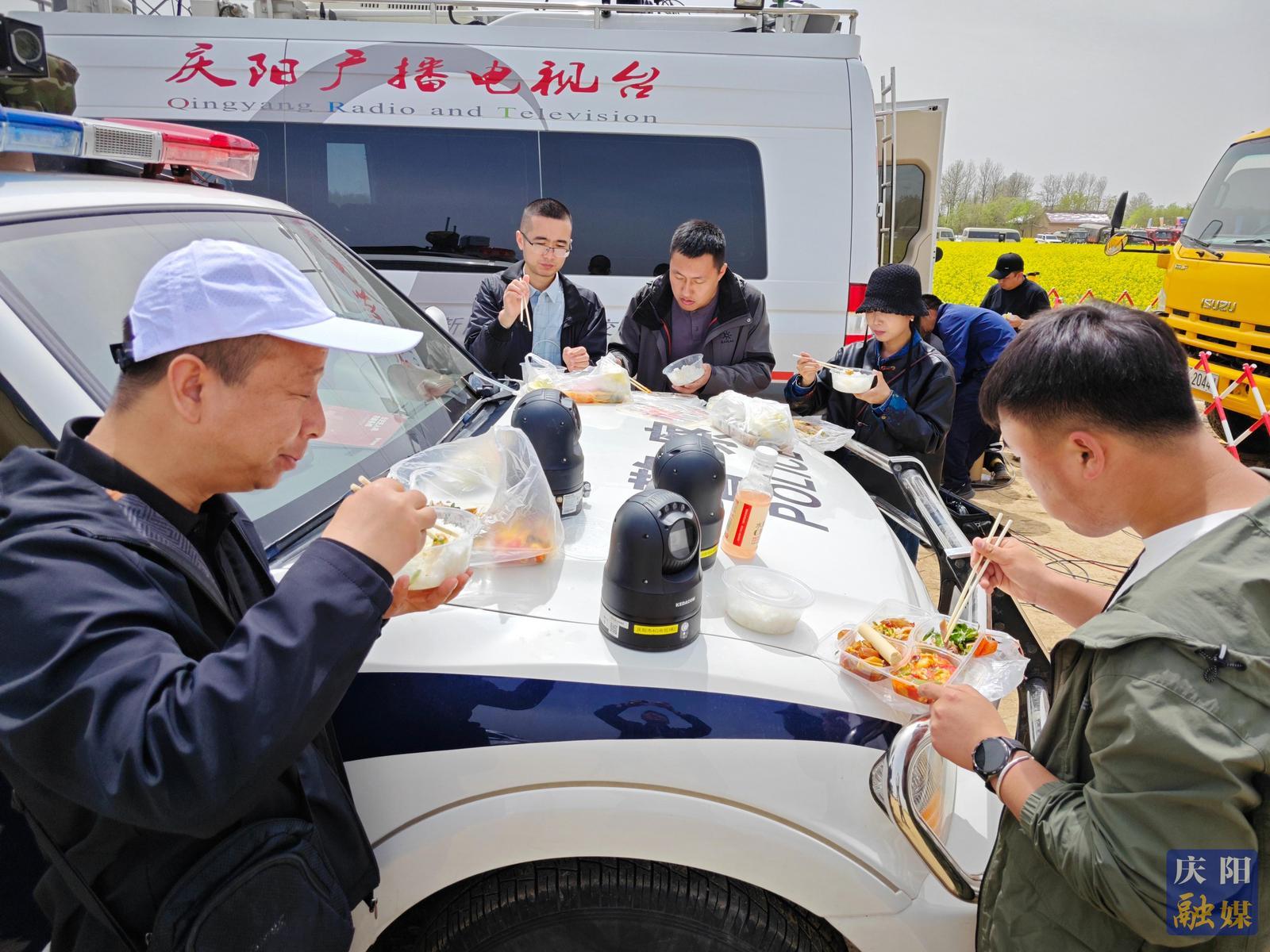 “2025數(shù)字中國創(chuàng)新大賽·低空經(jīng)濟(jì)賽道”比賽間隙,記者與執(zhí)勤警察在賽場邊露天用餐。