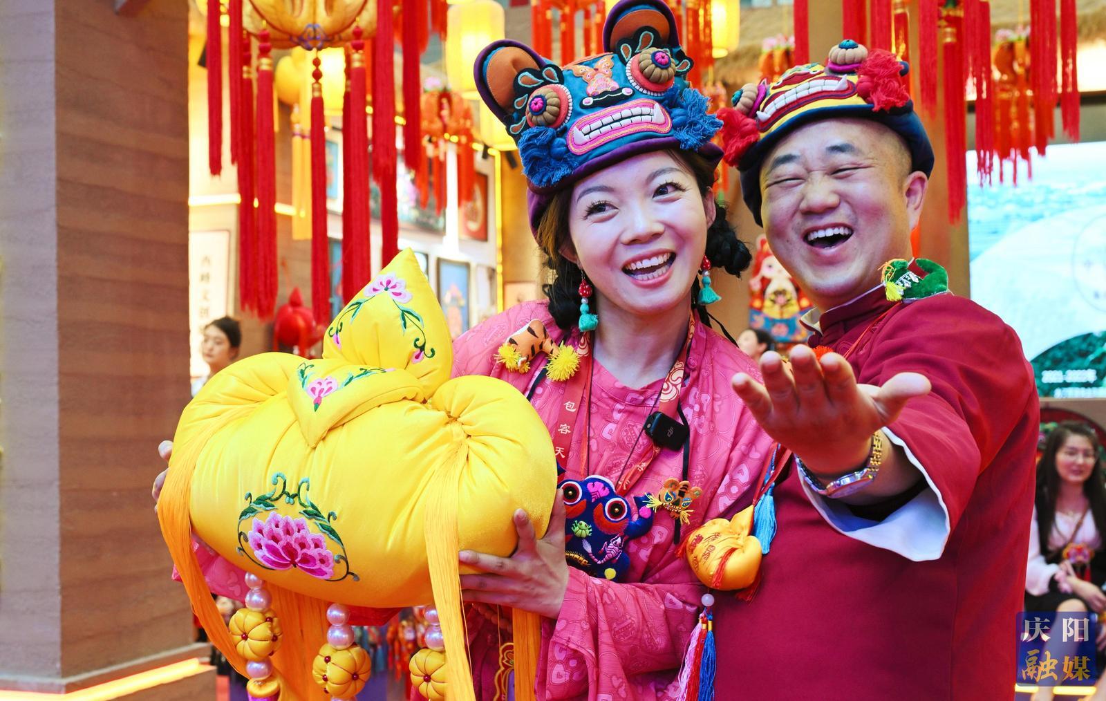 主持人在第二十屆慶陽香包民俗文化節(jié)現(xiàn)場直播。