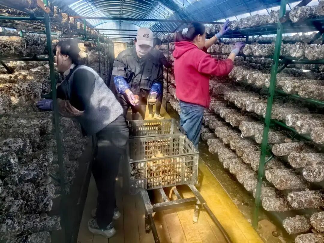 產(chǎn)業(yè)興則百姓富,聯(lián)農(nóng)帶農(nóng)是產(chǎn)業(yè)發(fā)展的核心底色。產(chǎn)業(yè)園在擴(kuò)規(guī)提質(zhì)的同時(shí),也構(gòu)建起“基地+農(nóng)戶(hù)”的緊密利益聯(lián)結(jié)機(jī)制,精準(zhǔn)吸納農(nóng)村剩余勞動(dòng)力、留守婦女、脫貧戶(hù)等就近務(wù)工,讓村民實(shí)現(xiàn)“家門(mén)口就業(yè)、顧家掙錢(qián)兩不誤”。“每天在產(chǎn)業(yè)園務(wù)工,負(fù)責(zé)裝袋、上棒、采摘這些活計(jì),技術(shù)簡(jiǎn)單易學(xué),一個(gè)月能掙幾千塊,比外出打工方便多了?!闭诓烧降拇迕裥χf(shuō)。從菌棒生產(chǎn)時(shí)的原料攪拌、裝袋滅菌,到養(yǎng)菌期的溫濕度調(diào)控,再到采收季的采摘分揀,每個(gè)環(huán)節(jié)都能看到務(wù)工村民的身影,產(chǎn)業(yè)園常年提供穩(wěn)定就業(yè)崗位數(shù)十個(gè),旺季時(shí)可達(dá)上百人,讓村民穩(wěn)穩(wěn)端住“增收飯碗”。