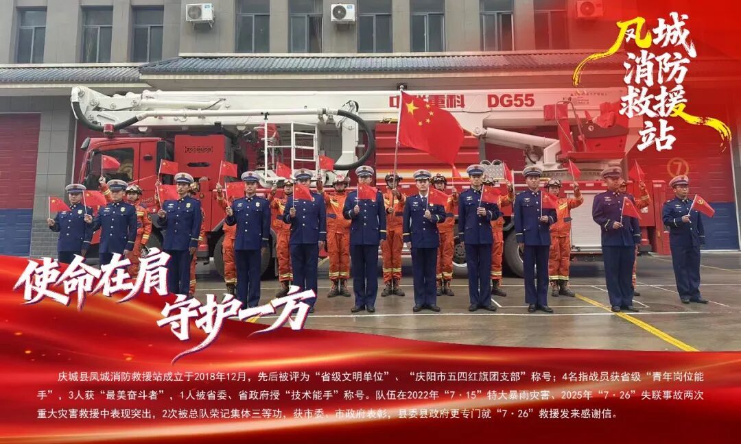 2018年11月9日,習(xí)近平總書記向國家綜合性消防救援隊伍授旗并致訓(xùn)詞,為這支全新的人民隊伍指明前進方向、注入強大力量。七年來,鳳城消防救援站始終將訓(xùn)詞精神深植于心、外化于行,牢牢錨定“扛紅旗、爭先進、樹標(biāo)桿”的奮斗目標(biāo)。近年來,鳳城消防救援站榮獲縣級至省級文明單位,獲評“慶陽市五四紅旗團支部”等稱號;4名消防救援人員獲省級“青年崗位能手”等榮譽,3人獲評“最美奮斗者”等稱號,1人被省委、省政府授予技術(shù)能手稱號。在2022年“7·15”特大暴雨災(zāi)害、2025年“7·26”失聯(lián)事故救援中,隊伍表現(xiàn)突出,2次被總隊榮記集體三等功,獲市委、市政府表彰。