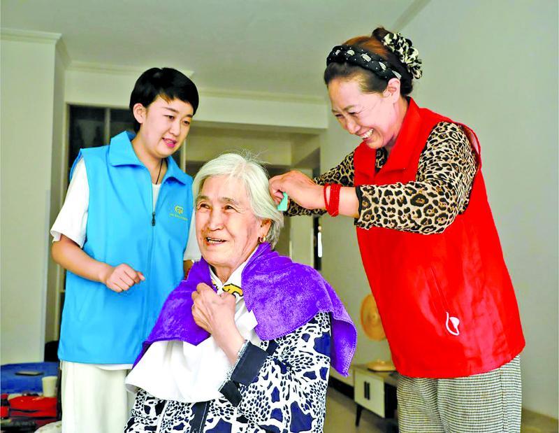初冬的午后,在環(huán)縣康潤嘉園小區(qū)83歲老人王桂花家,仁愛社會工作服務(wù)中心的志愿者慕小蘭和王莉一邊為老人理發(fā),一邊陪老人聊天?!斑@些孩子很貼心,上個(gè)月我頭暈下不了床,小王連夜給我送來了藥,還叮囑我注意用藥劑量?!?/p>