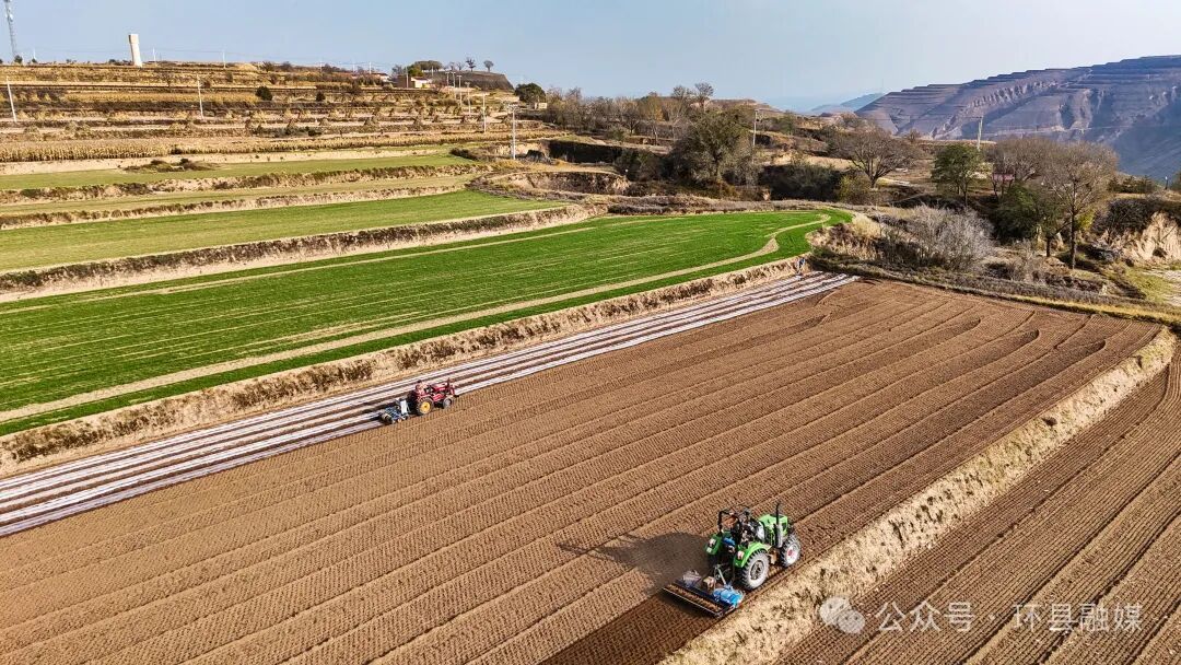 秋陽映沃野,覆膜搶農(nóng)時。秋收過后,環(huán)縣廣袤的梯田上再次忙活起來,田間地頭人來人往、機(jī)械轟鳴,一條條帶狀地膜在陽光照射下泛出銀白色光芒,為農(nóng)田“穿”上閃亮的“秋”裝,形成了一道獨特的秋日鄉(xiāng)村風(fēng)景圖。