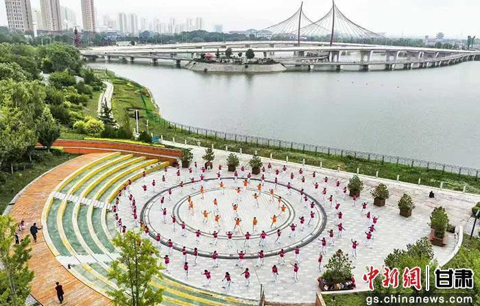 甘肅省“全民健身日”主題活動慶陽市“千人共舞”展示現(xiàn)場。 徐嘉英 攝