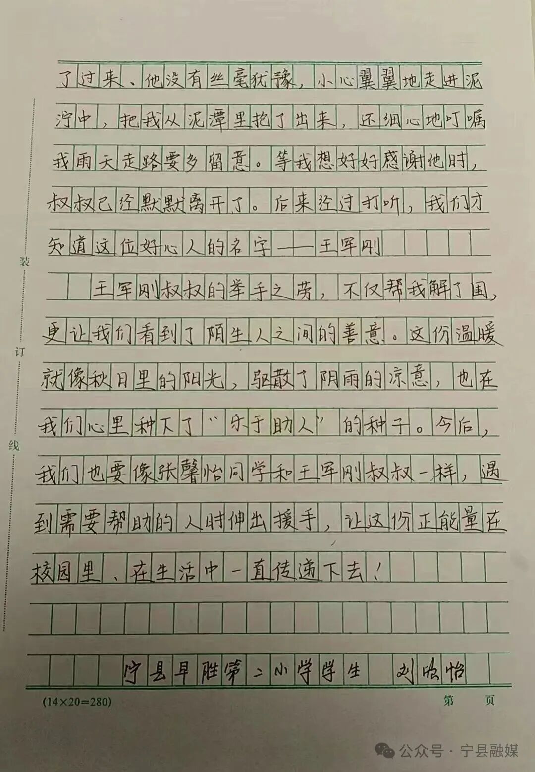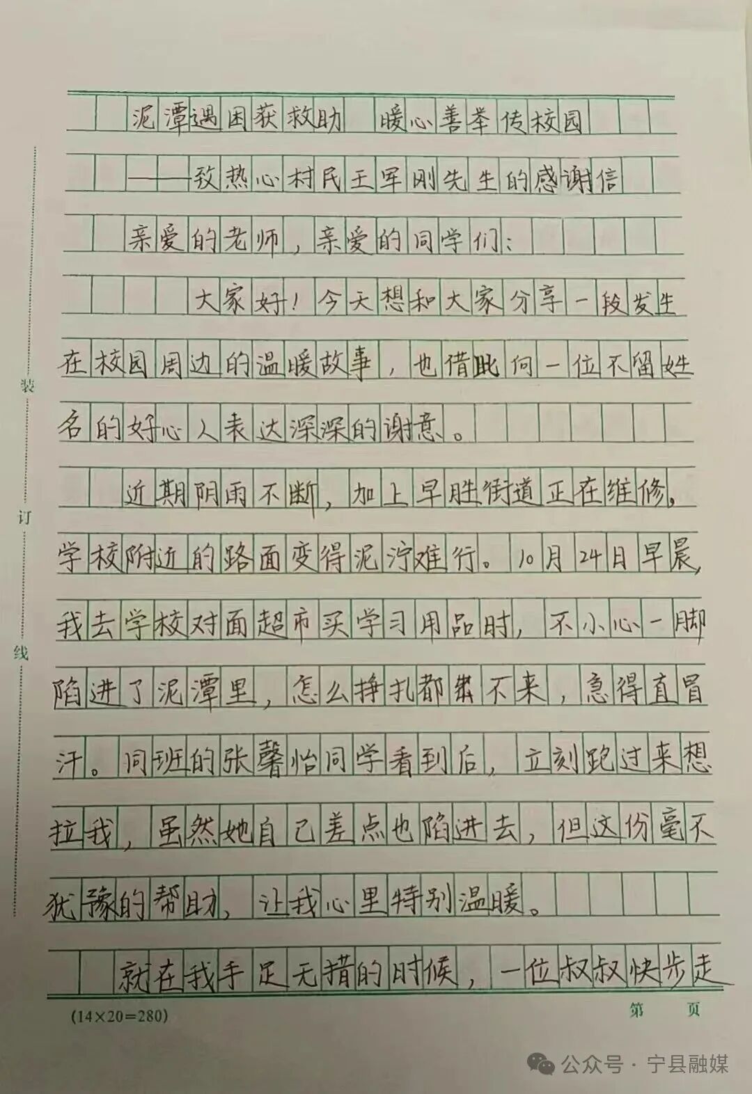“王叔叔,您的幫助對(duì)我來說不只是把我從泥潭里拉出來,更讓我看到,陌生人之間也有這么溫暖的關(guān)懷。這件事我會(huì)一直記在心里。我以后也要像您一樣盡自己所能去幫助身邊需要幫助的人,把這份好心傳遞下去……”日前,一份致《寧縣義警協(xié)會(huì)中村義警中隊(duì)王軍剛叔叔的感謝信》在寧縣早勝、中村附近十里八村廣為傳頌,人們都豎起大拇指,紛紛稱贊義警王軍剛的暖心善舉。