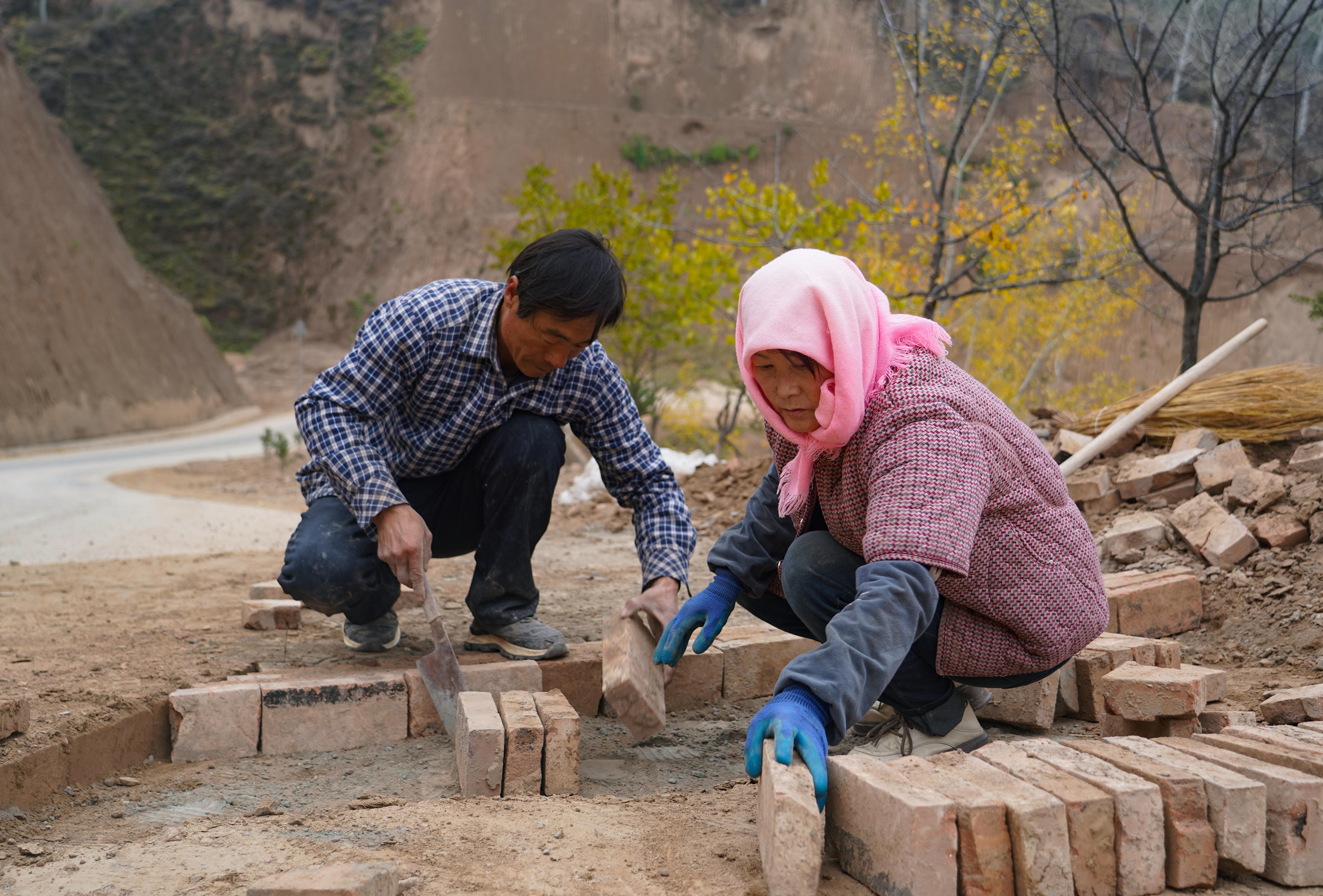 初冬清晨,環(huán)縣環(huán)城鎮(zhèn)十八里村的王興龍夫婦正忙著鋪砌院門前的最后幾塊磚。這條小路的盡頭,連接著一條嶄新的水泥路——一條直通家門的硬化路。