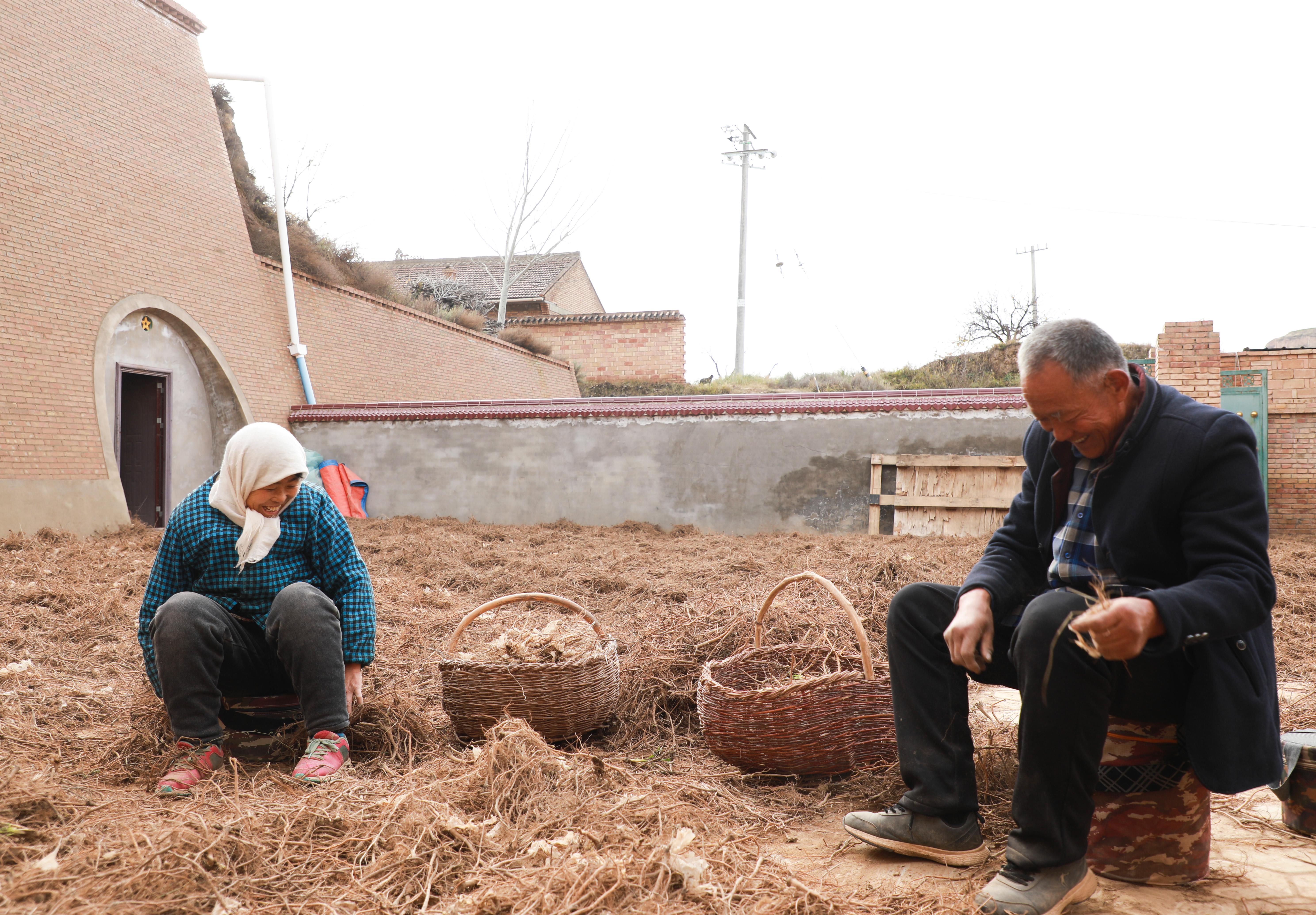 幾年前,劉賢君一直在外務(wù)工?!翱傇谕饷媾?,心里最惦記家里父母?!鞭D(zhuǎn)機出現(xiàn)在前幾年,鎮(zhèn)上探索“羊+”多元產(chǎn)業(yè)發(fā)展,把柴胡種植作為推進群眾增收的特色產(chǎn)業(yè)來重點培育。這一機遇這讓他看到了留在家鄉(xiāng)的希望,毅然返鄉(xiāng),將創(chuàng)業(yè)的根扎進了家鄉(xiāng)深厚的黃土里。從最初十幾畝的忐忑試種,到如今管理著二百畝藥田,他憑借當?shù)氐膬?yōu)質(zhì)水土和充足光照,種出了皂苷含量高達0.44%的優(yōu)質(zhì)柴胡。“去年挖的還不是最好的藥材,收入就有6萬元。今年這滿院子的,可是更大的希望!”他笑著說。