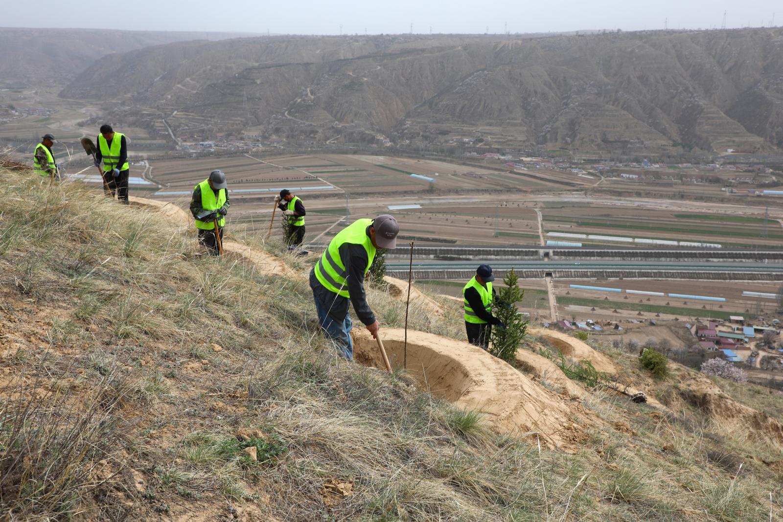 在甜水鎮(zhèn)的一片新造林區(qū),造林隊(duì)員李世梅正忙著挖樹畦栽苗,“今年我們這塊地主要栽植的是檸條和山桃,這些都是耐旱的品種,特別適合我們這里的氣候?!彼f,雖然工作辛苦,但看著一棵棵樹苗在曾經(jīng)的光禿禿的山坡上扎下根,心里特別踏實(shí)。