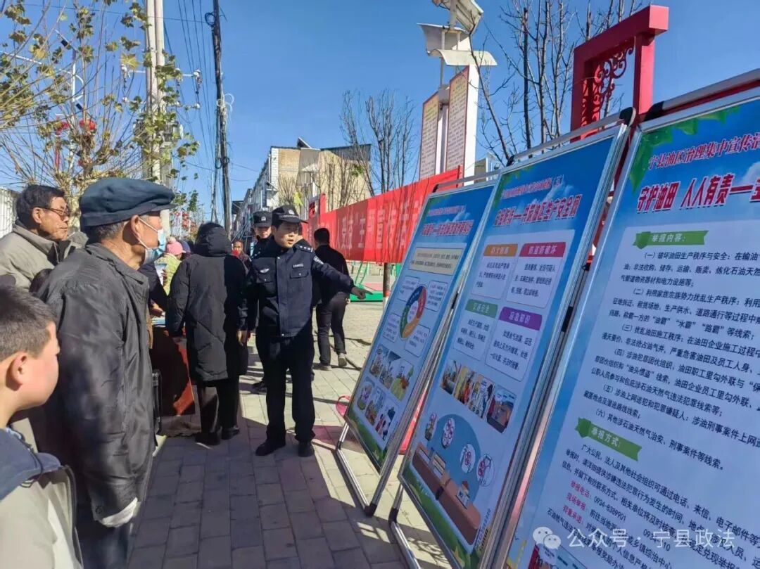 11月17日,為深入推進油區(qū)治理工作,提升群眾法治意識和參與熱情,寧縣委政法委組織縣公安局、油田單位聯合盤克鎮(zhèn)政府在盤克街區(qū)開展油區(qū)治理集中宣傳活動。