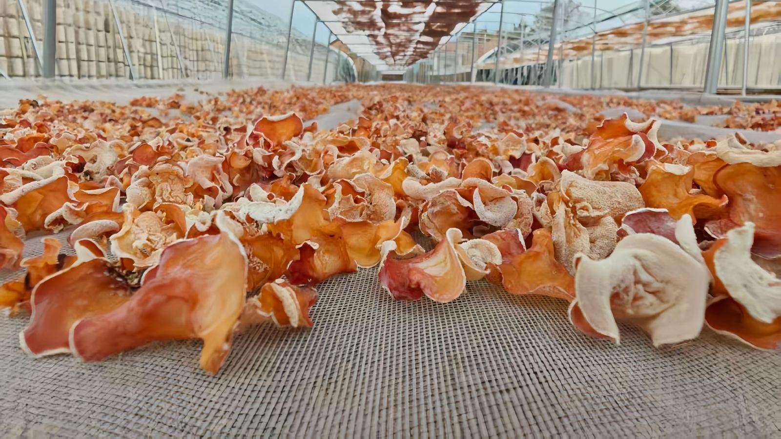 平子鎮(zhèn)食用菌全產(chǎn)業(yè)鏈多彩木耳進(jìn)行晾曬