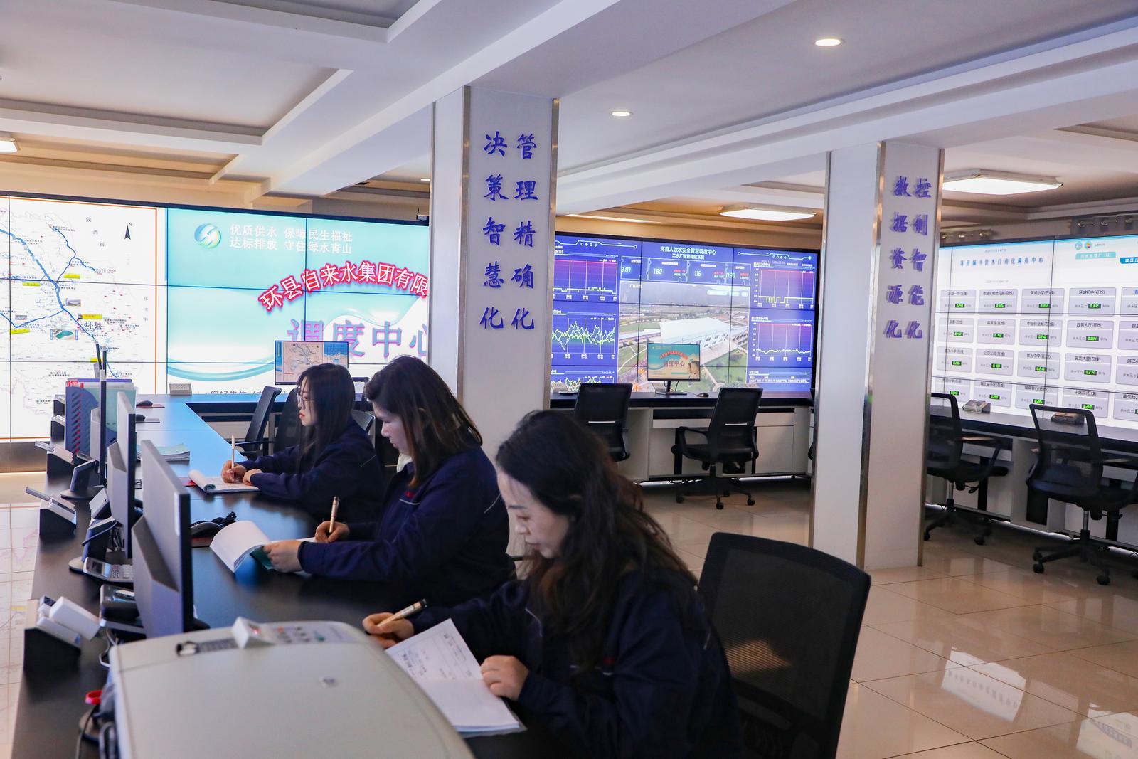 在環(huán)縣城鄉(xiāng)供水自動化調(diào)度指揮中心,巨大的電子屏幕上實時顯示著從水源地到用戶水龍頭的全過程數(shù)據(jù)。這里是環(huán)縣供水體系的“智慧大腦”。