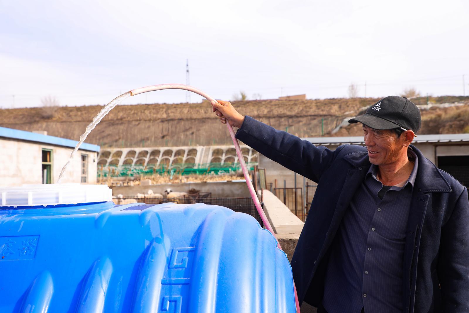 冬日清晨,迎著熹微的晨光,環(huán)縣山城鄉(xiāng)山城堡村村民徐過英打開水龍頭,清澈的自來水嘩嘩涌出,她自然地接滿一桶,放在灶臺上,開始準備早飯。院子另外一側,丈夫曹占榮正將水管拉向羊棚,不一會兒,水槽里住滿了水,一群羊圍攏過來爭相喝水。