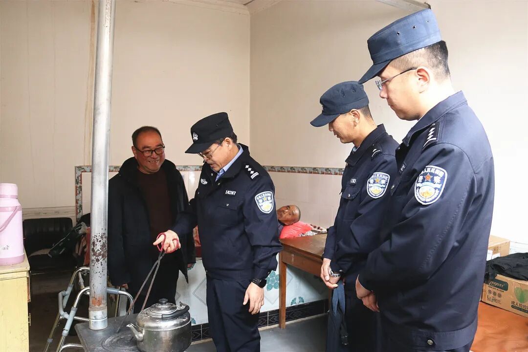 民警馬志遠(yuǎn)與輔警杜強(qiáng)上門為村民進(jìn)行冬季防火安全宣傳