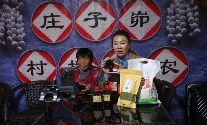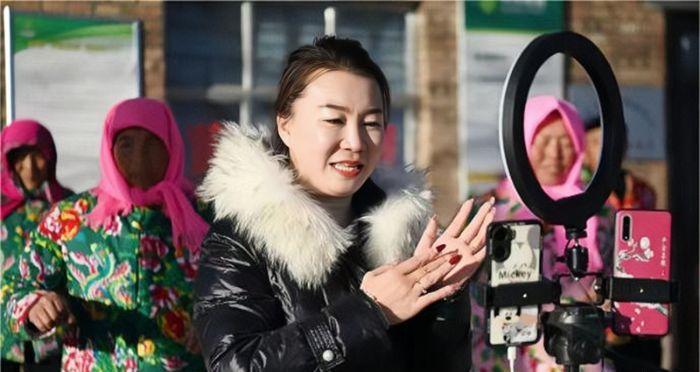 楊清艷帶領(lǐng)村民直播賣貨。 喬潔攝