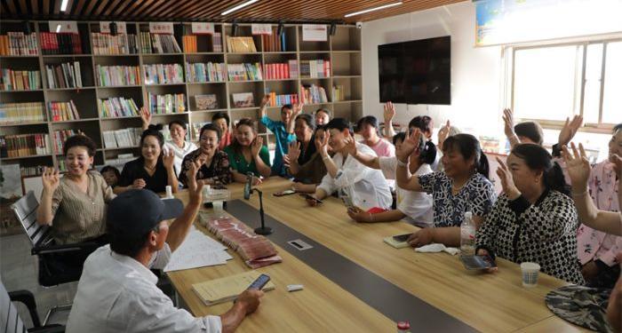 楊清艷牽頭成立的莊子峁生態(tài)農(nóng)莊為產(chǎn)業(yè)戶分紅。 喬潔攝