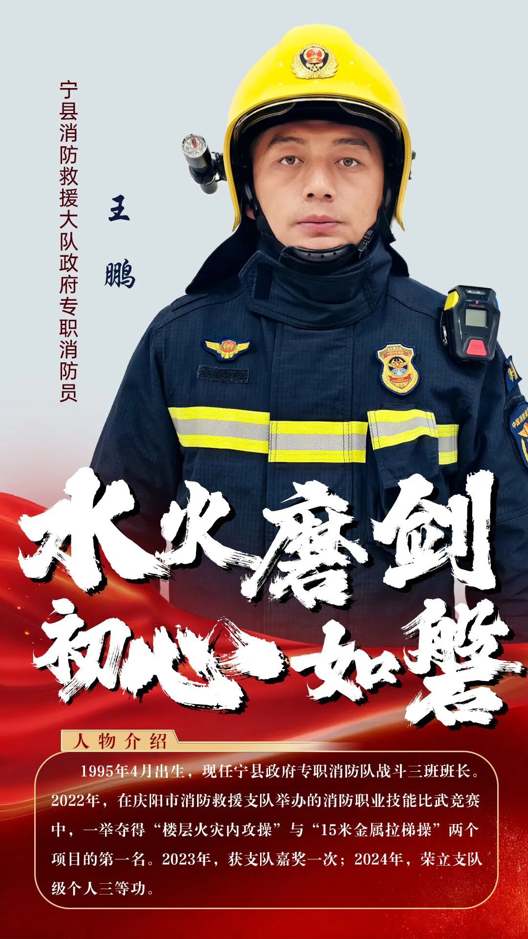 王鵬,男,漢族,1995年4月出生,現(xiàn)任寧縣政府專職消防隊?wèi)?zhàn)斗三班班長。自2021年加入消防救援隊伍以來,他始終戰(zhàn)斗在滅火救援第一線,累計參與處置各類災(zāi)害事故150余起,保護人民群眾財產(chǎn)價值20余萬元。該同志政治立場堅定,作風(fēng)扎實過硬,能力素質(zhì)突出,在2022年慶陽市消防救援支隊舉辦的消防職業(yè)技能比武競賽中,他勇奪“樓層火災(zāi)內(nèi)攻操”與“15米金屬拉梯操”雙項冠軍;2023年獲支隊嘉獎;2024年榮立支隊級個人三等功。
