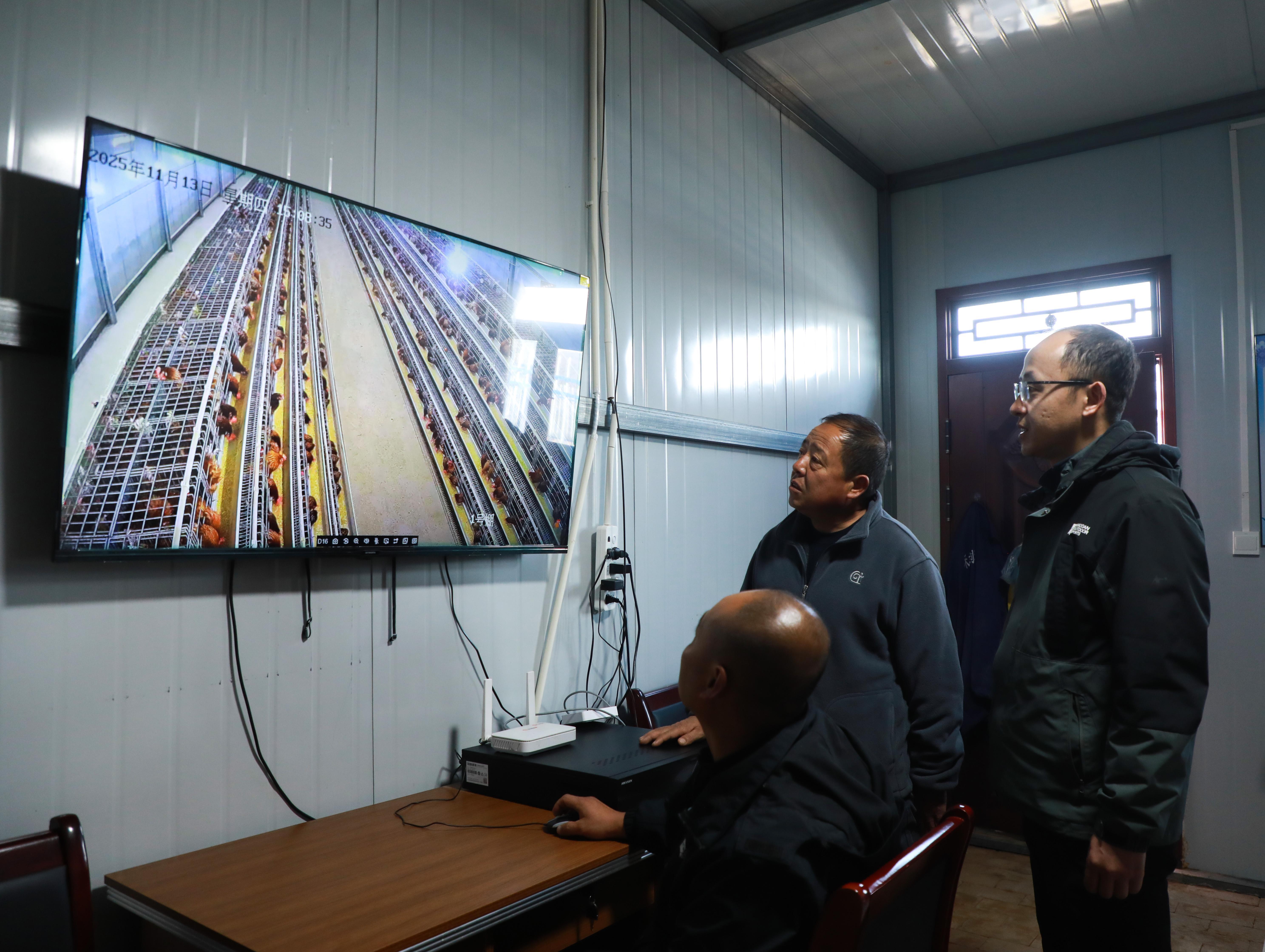 “以前村里養(yǎng)蛋雞,都是農(nóng)戶各自為戰(zhàn),雞舍就是自家小院的角落,喂料靠手撒、清糞靠人挑,一場(chǎng)疫病就可能血本無(wú)歸。”正在監(jiān)控室查看數(shù)據(jù)的村黨支部書(shū)記苗小剛,指著屏幕上正在吃食的蛋雞,語(yǔ)氣中滿是感慨。